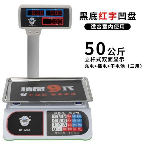 • 팔이 있는 프리미엄 9세대 슈퍼마켓 저울 - 검정색 배경에 빨간색 글자가 있는 오목한 접시 823
