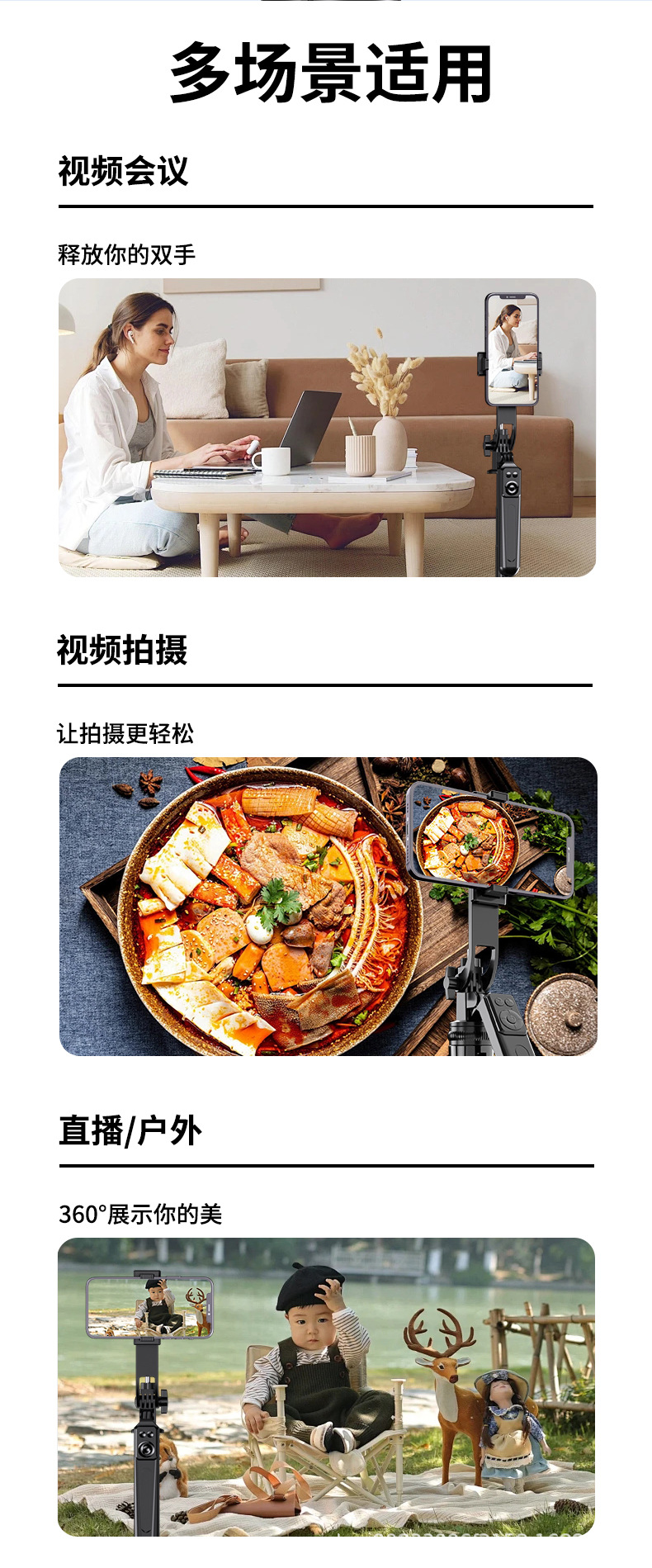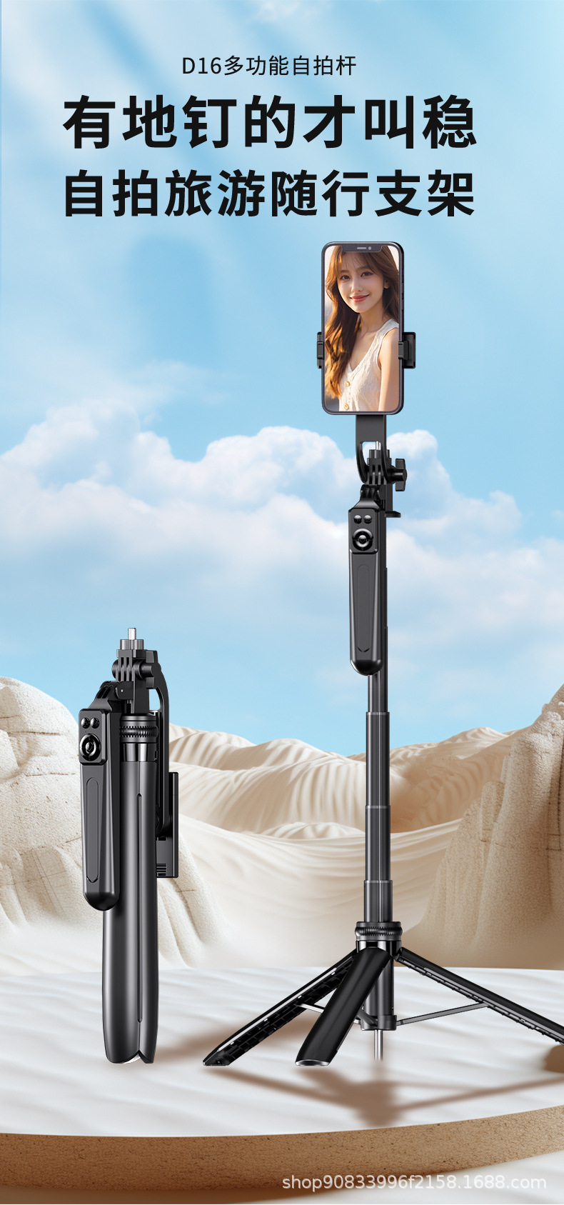 2025년 새로운 모델, 휴대폰 셀카봉, 원클릭으로 삼각대 열기, GoPro 카메라와 호환되는 블루투스 리모콘