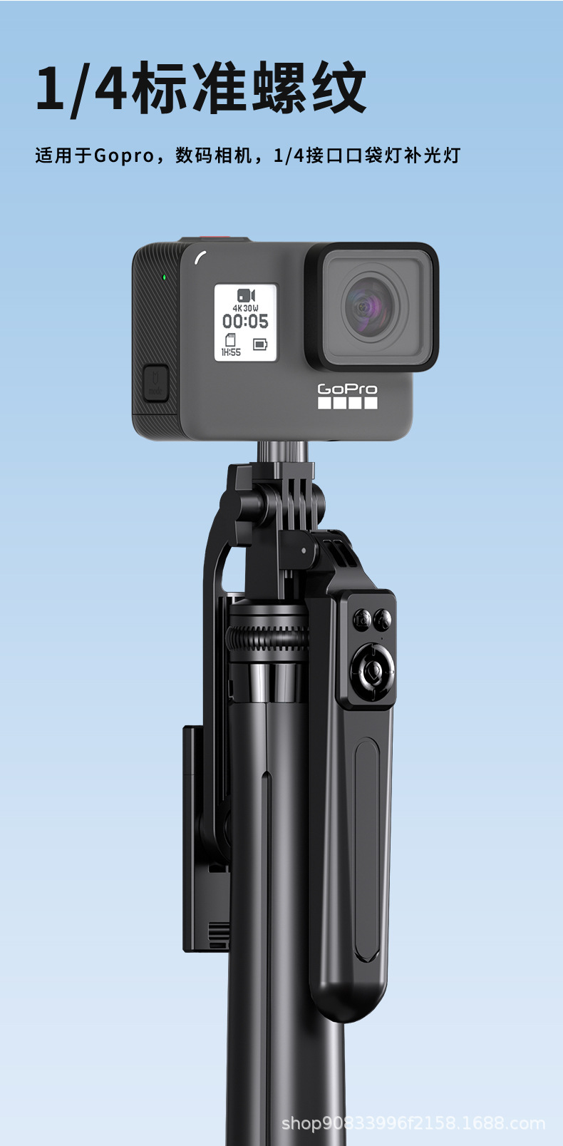 2025년 새로운 모델, 휴대폰 셀카봉, 원클릭으로 삼각대 열기, GoPro 카메라와 호환되는 블루투스 리모콘스토어 가기