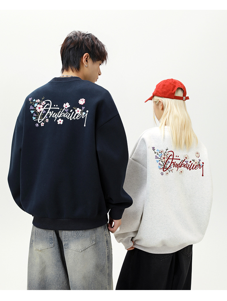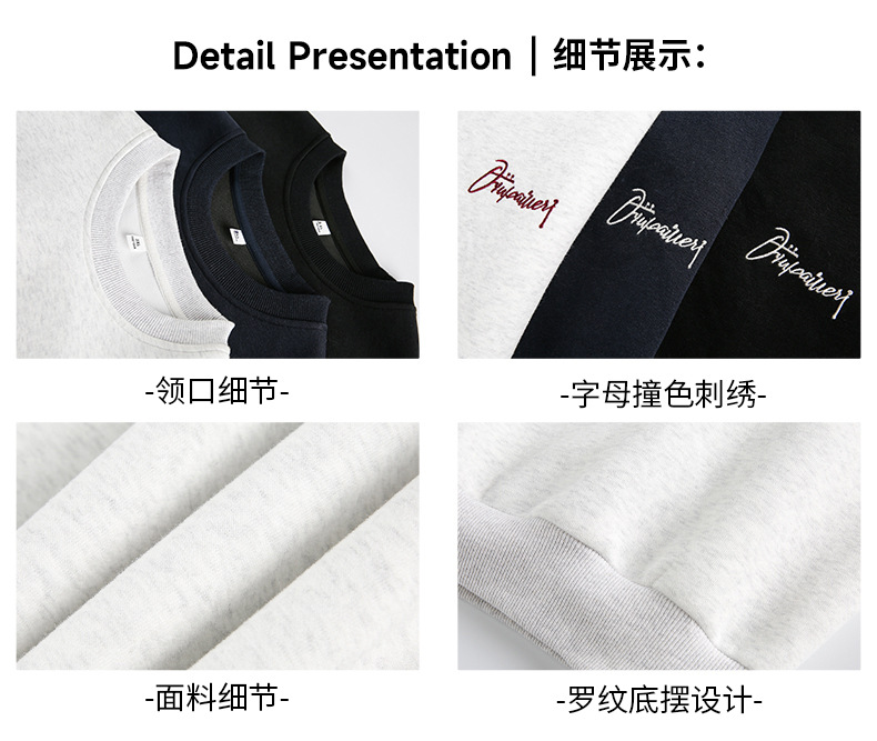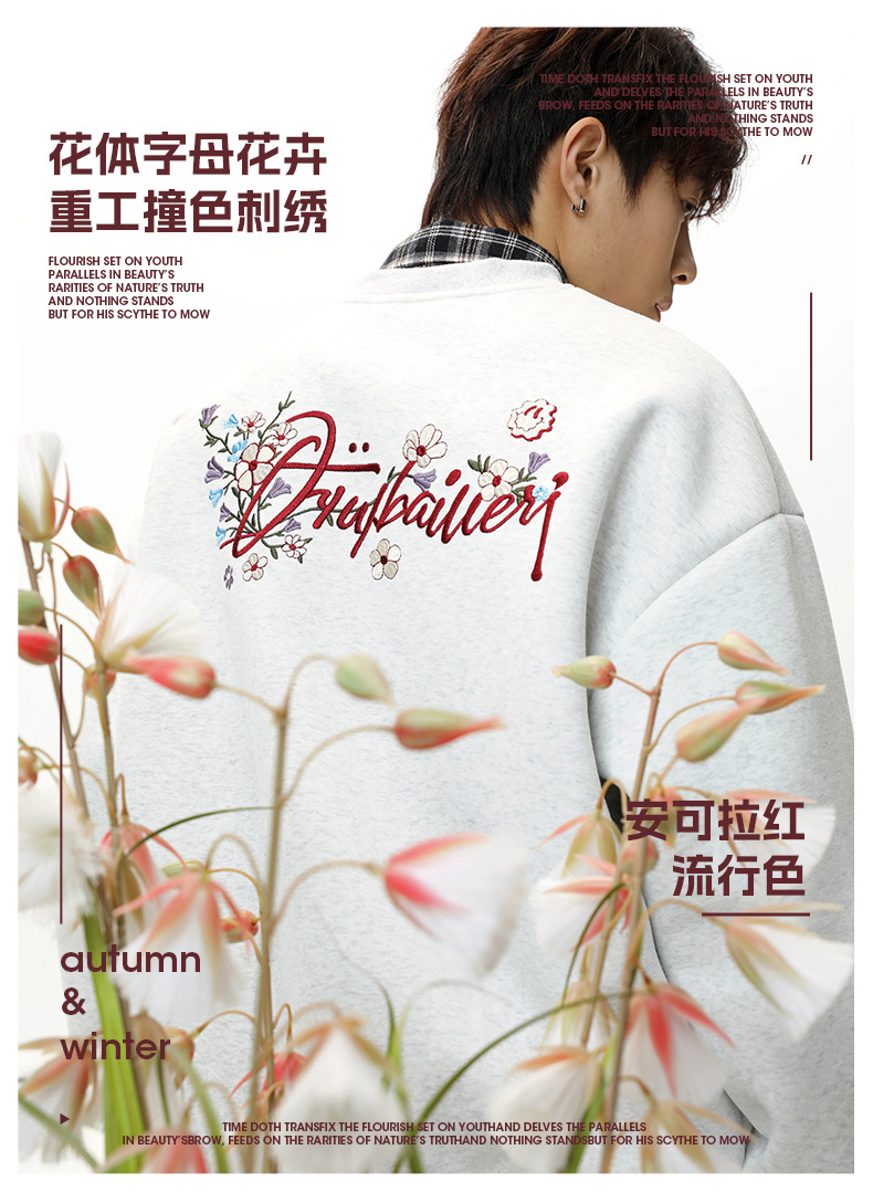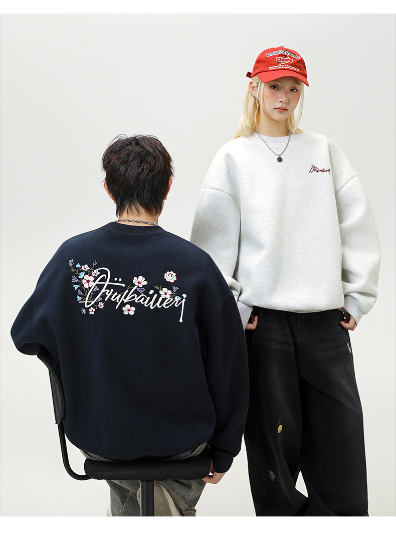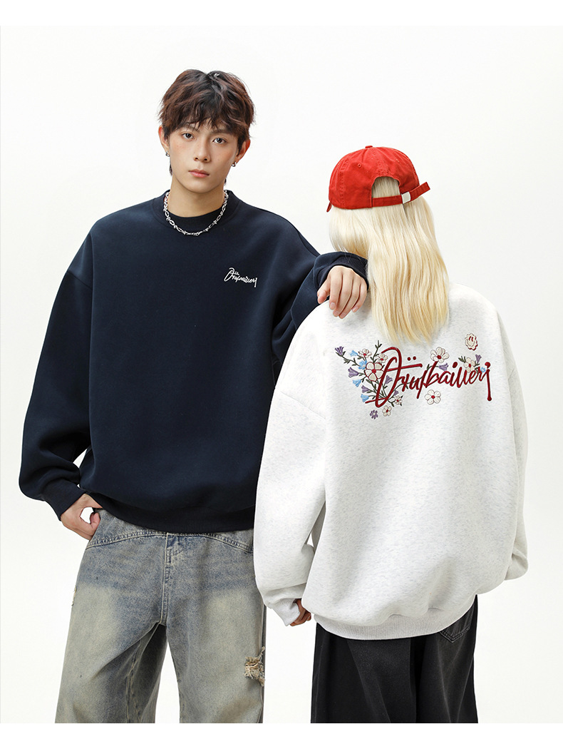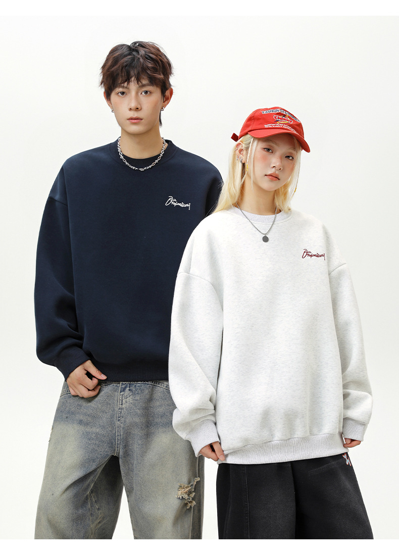 남성과 여성을 위한 헤비웨이트 텍스처 라운드 넥 스웨트셔츠, 커플을 위한 가을 스타일, 헤비 컬러 대비 자수 트렌디 브랜드 루즈 풀오버 재킷스토어 가기