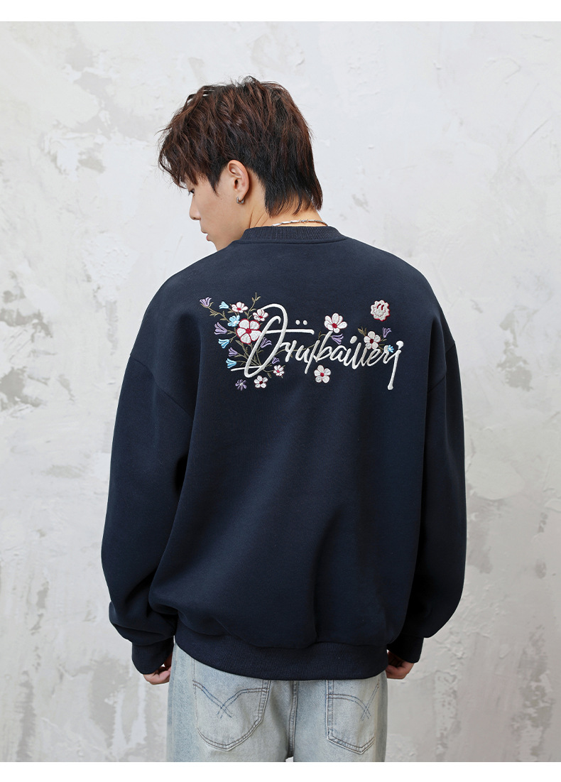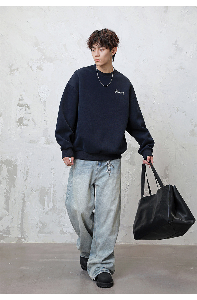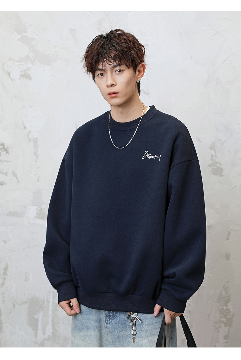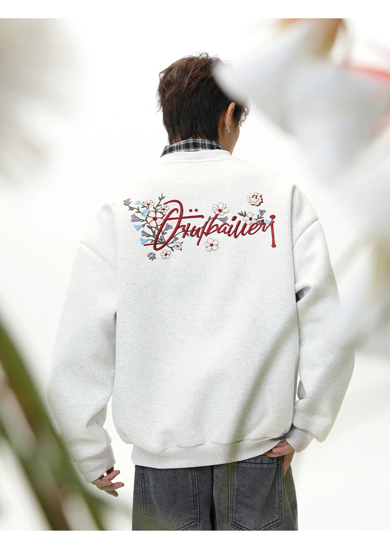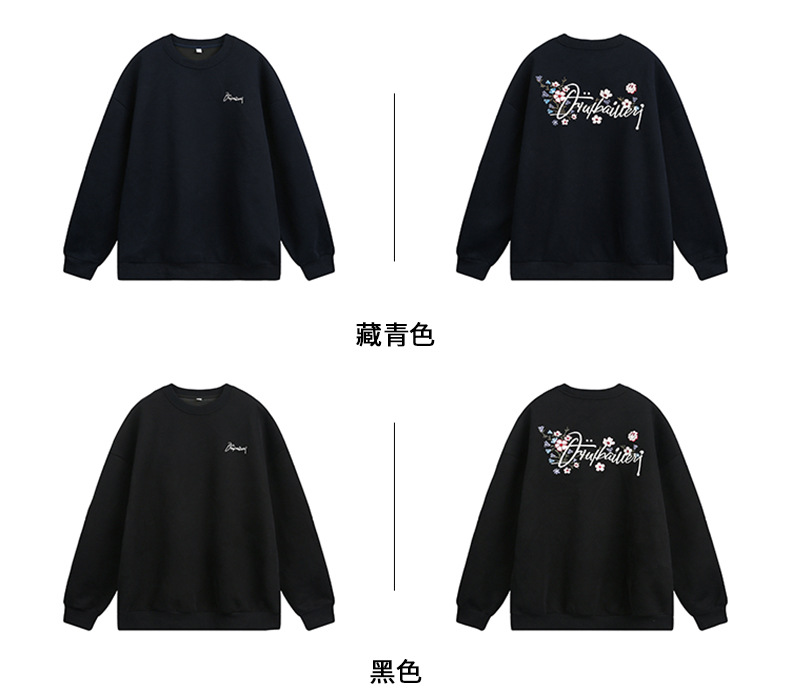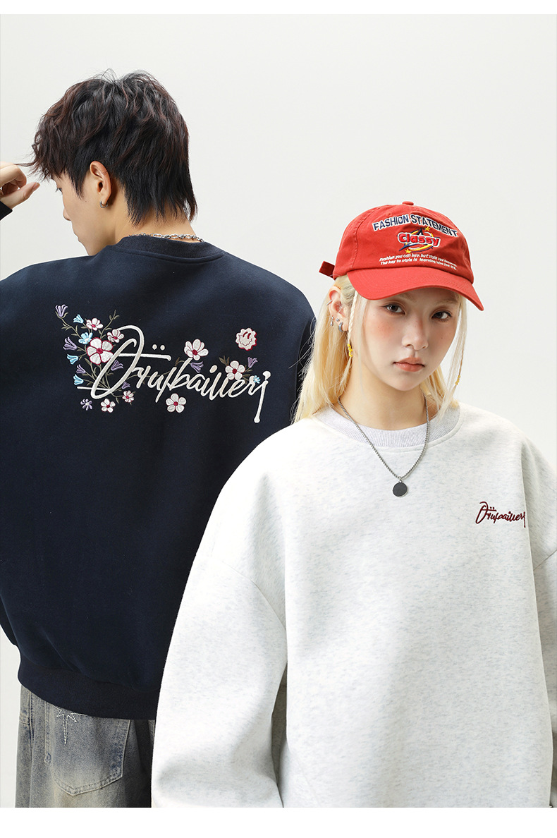 남성과 여성을 위한 헤비웨이트 텍스처 라운드 넥 스웨트셔츠, 커플을 위한 가을 스타일, 헤비 컬러 대비 자수 트렌디 브랜드 루즈 풀오버 재킷스토어 가기