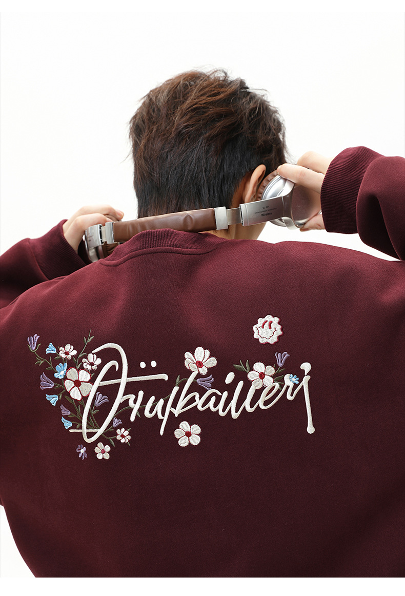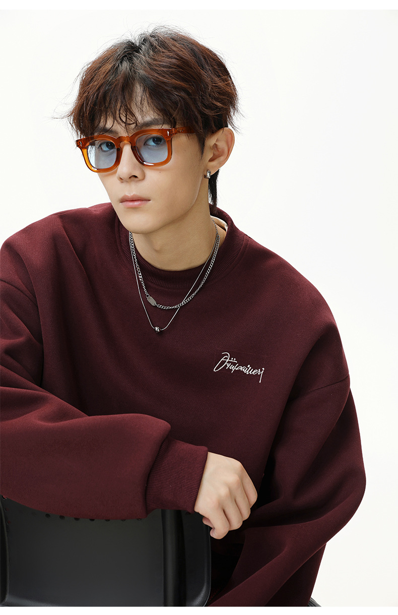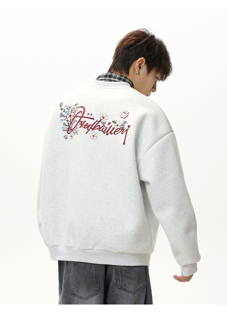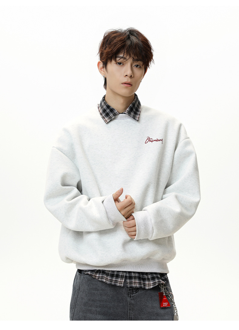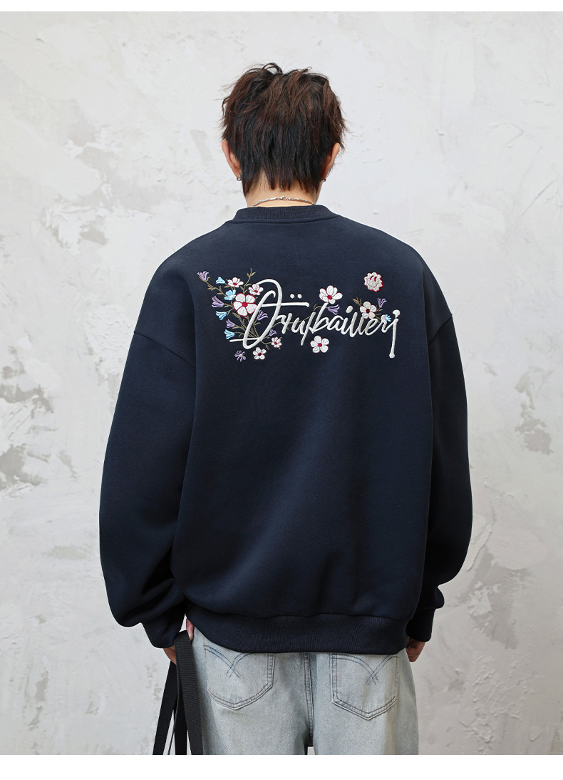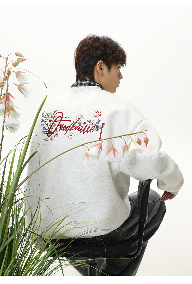 남성과 여성을 위한 헤비웨이트 텍스처 라운드 넥 스웨트셔츠, 커플을 위한 가을 스타일, 헤비 컬러 대비 자수 트렌디 브랜드 루즈 풀오버 재킷스토어 가기