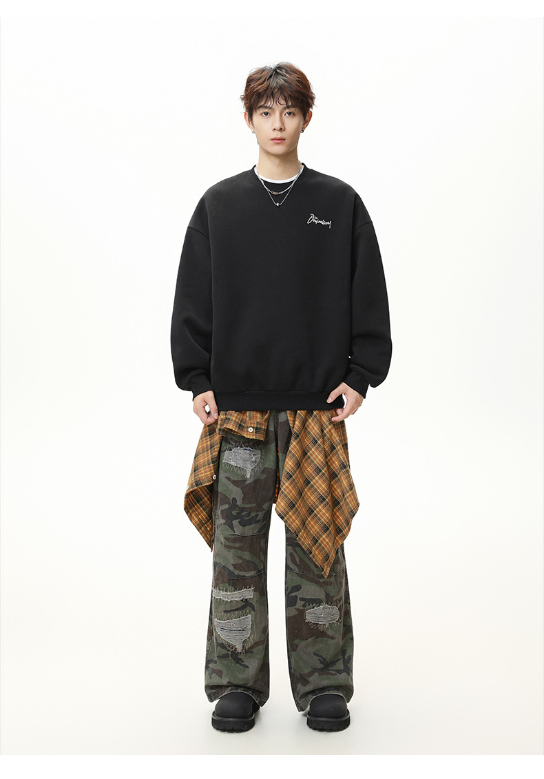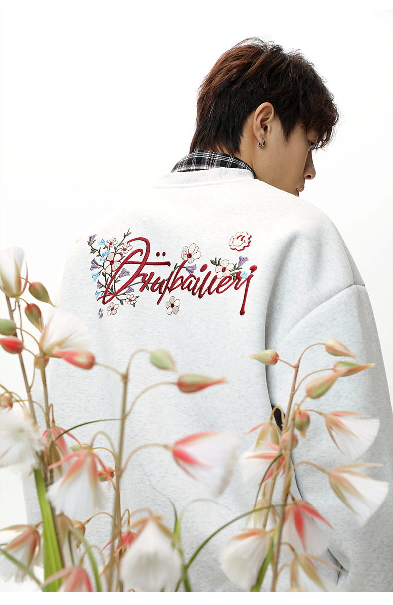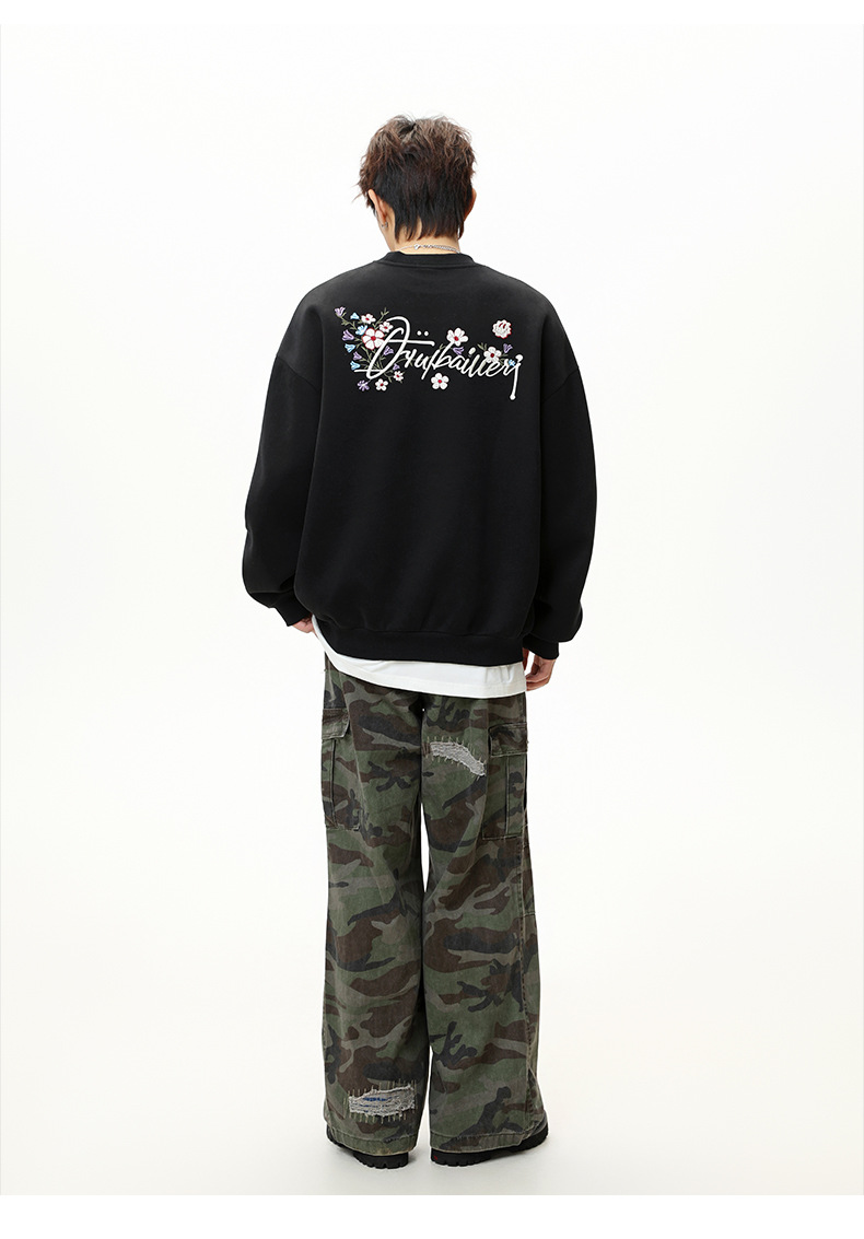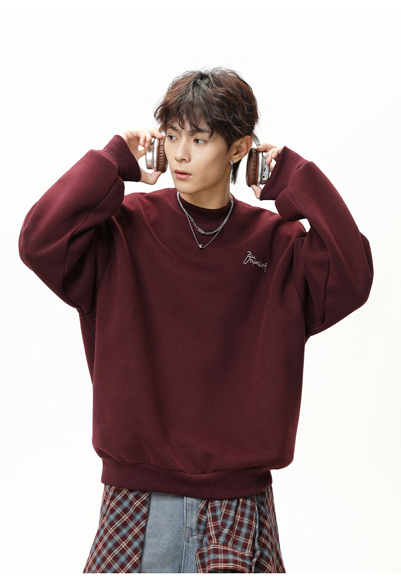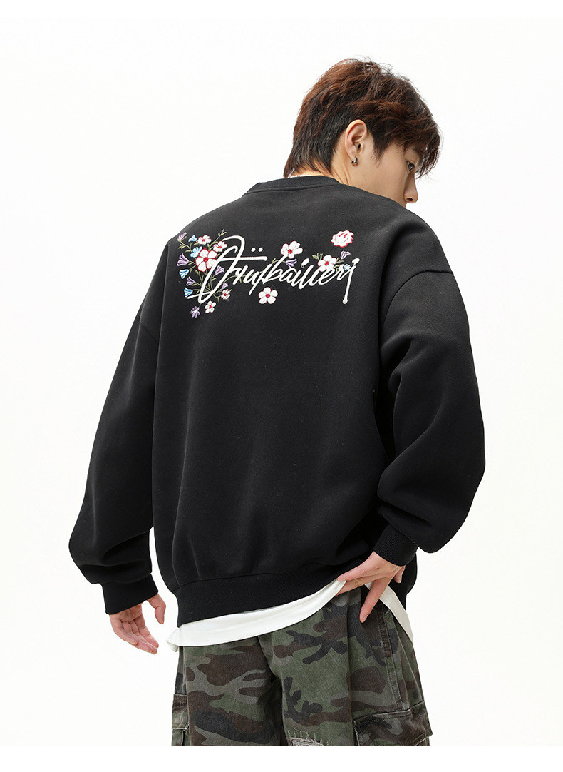 남성과 여성을 위한 헤비웨이트 텍스처 라운드 넥 스웨트셔츠, 커플을 위한 가을 스타일, 헤비 컬러 대비 자수 트렌디 브랜드 루즈 풀오버 재킷스토어 가기