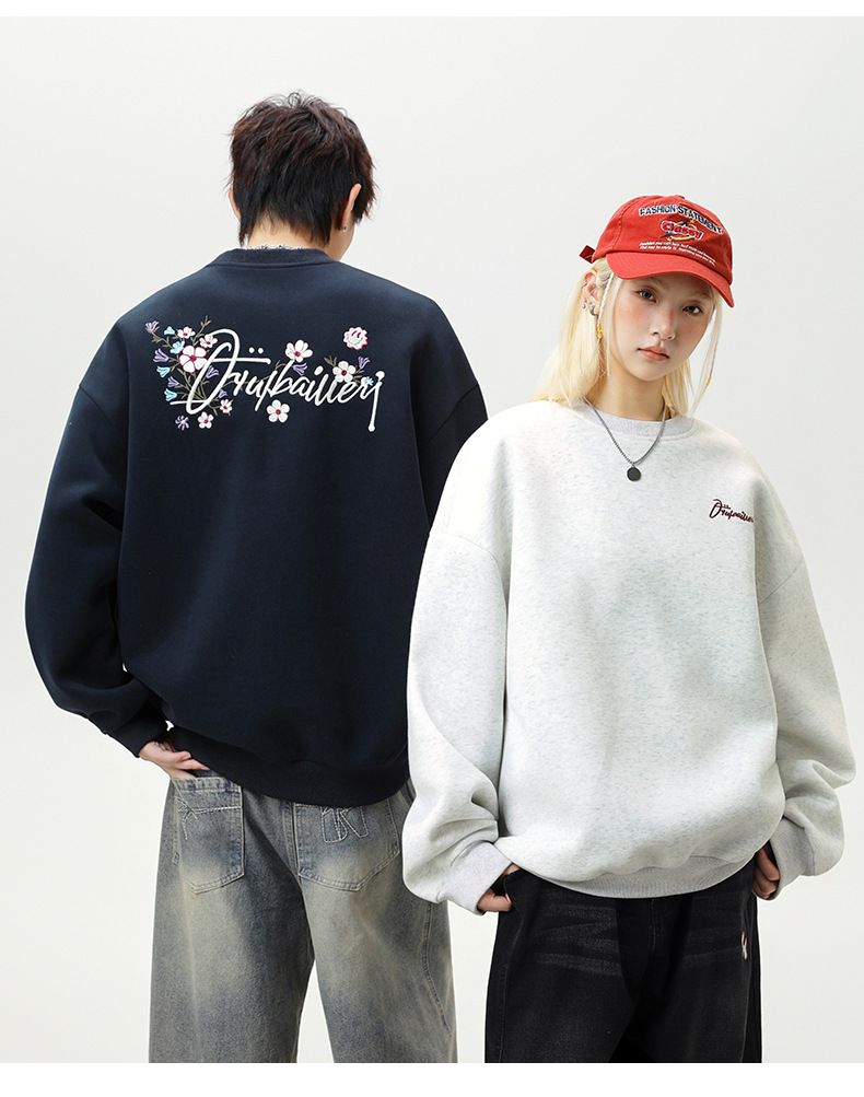 남성과 여성을 위한 헤비웨이트 텍스처 라운드 넥 스웨트셔츠, 커플을 위한 가을 스타일, 헤비 컬러 대비 자수 트렌디 브랜드 루즈 풀오버 재킷