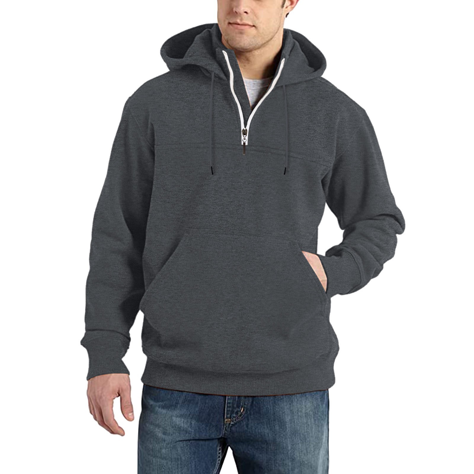 국경을 넘나드는 인기 가을 남성 후드티, 하프 지퍼 긴팔 트렌디 패션 남성 상의, 스포츠 등스토어 가기