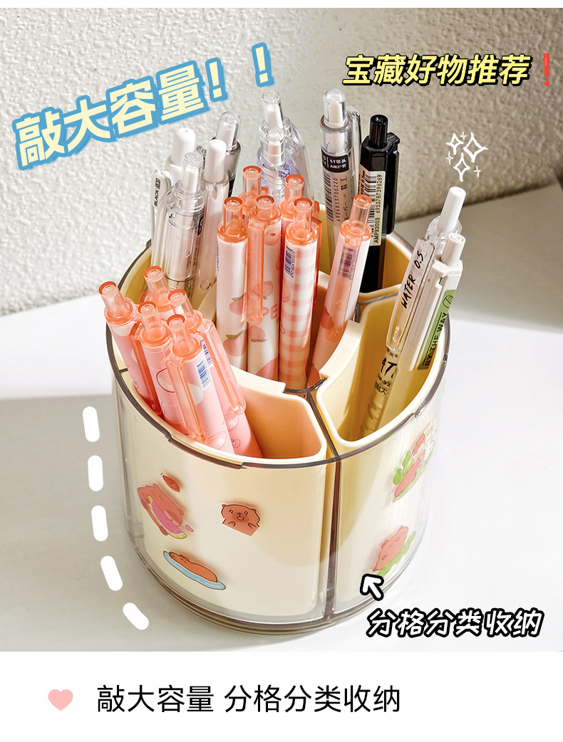 데스크탑 스토리지 박스 만화 회전 펜 홀더 크리 에이 티브 귀여운 학생 기숙사 책상 대용량 데스크탑 스토리지 펜 홀더