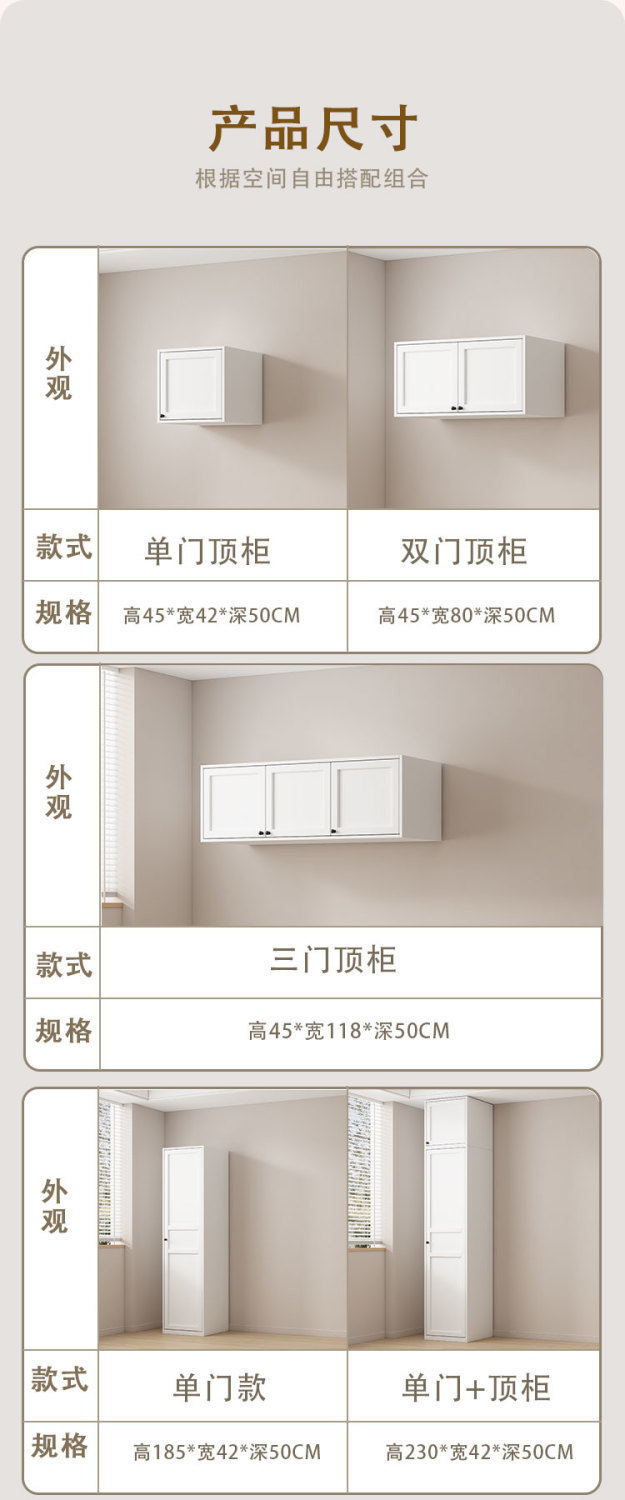 • 하얀 피부 느낌 [탄소강 0 알데히드] 42cm 길이의 싱글 도어 + 탑 캐비닛