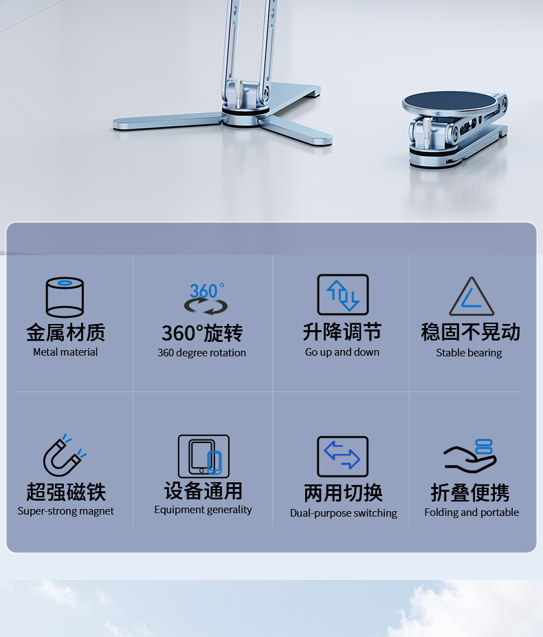 • 휴대폰 및 태블릿용 범용 자기 흡입 [알루미늄 합금 + 회전 + 접기 + 셀카]