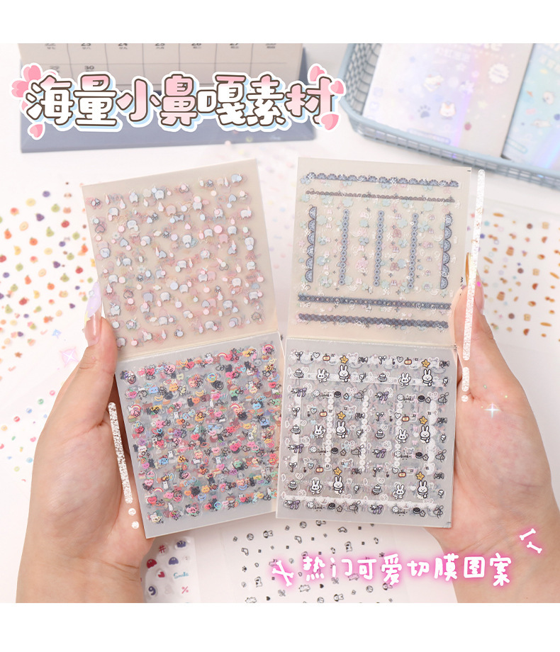 미니 데코 스티커, 귀여운 만화 코 레이저 별 핸드북 소재 장식 스티커 코 스티커