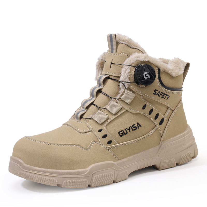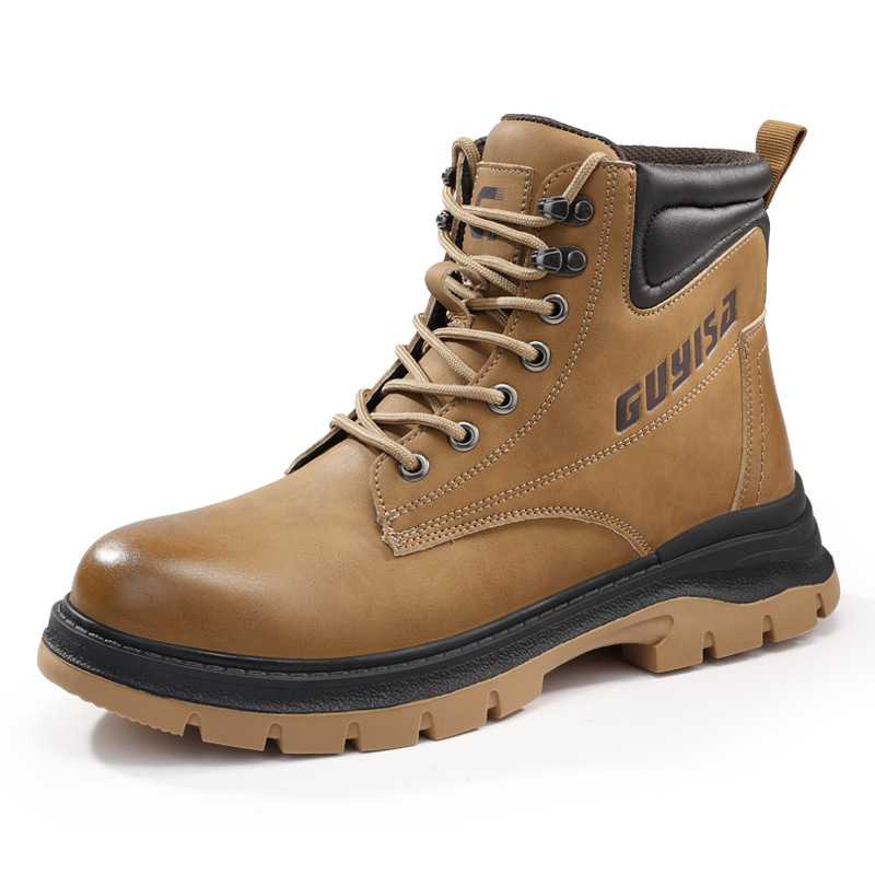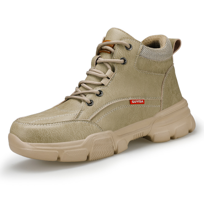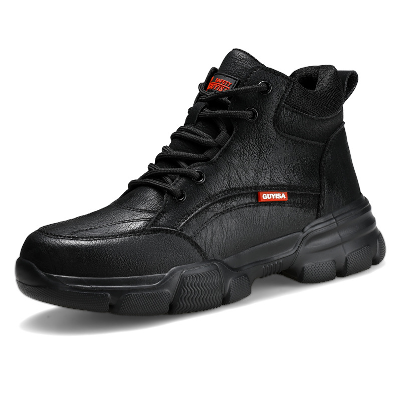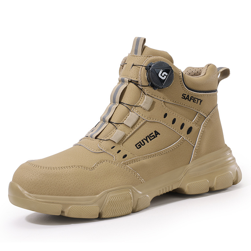 남성용 크로스보더 하이탑 노동 보호 신발, 새로운 충격 방지 및 펑크 방지 스마트 버튼 안전화, 편안한 방수 안전화스토어 가기