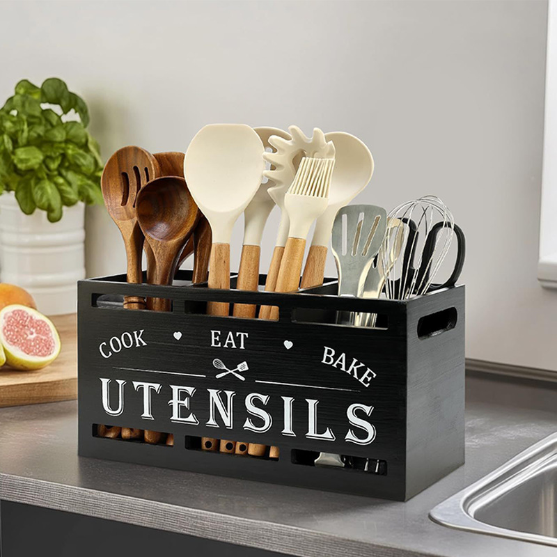 주방 식기 수납함, 수저, 주방용품 분할 정리 나무 상자, 양식당 탁상용 젓가락 수납함