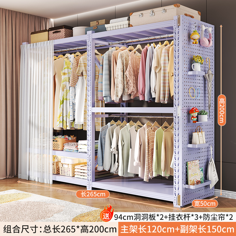 선반 옷장 간단한 조립 홈 침실 옷장 보관 선반 구멍 보드 강철 금속 옷걸이