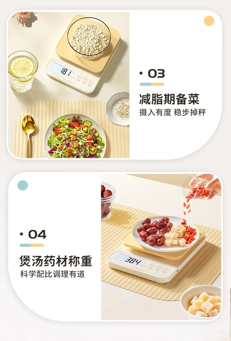 • 노란색과 흰색 색상 조합 10kg/0.1g 배터리 모델(트레이 제외)