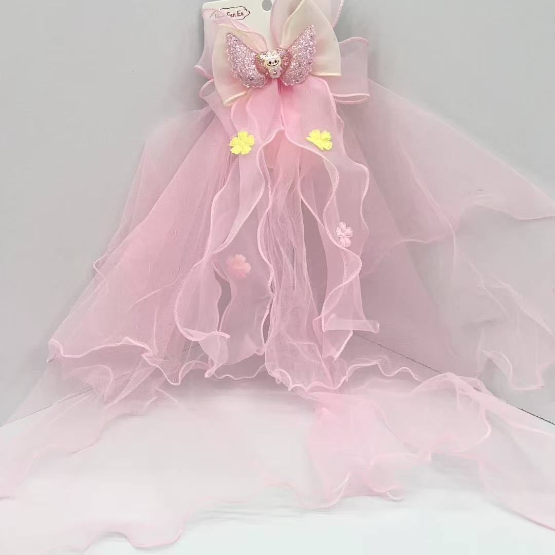 어린이 labubu 머리핀 귀여운 labubu 머리 장식 베일 활 공주 베일 머리핀 아기 소녀 헤어 액세서리