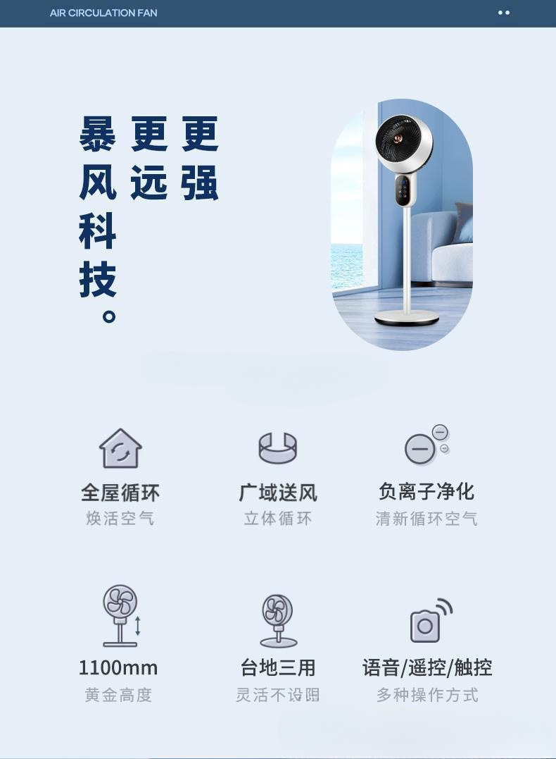 • 전용 리모콘 모델 [100회 에어컨 순환 냉기丨수입 무브먼트丨음이온 정화丨지능형 타이밍丨스탠드 및 스탠드 겸용丨조용하고 조용한丨자동 쉐이킹 헤드