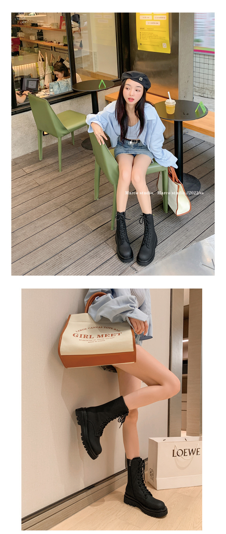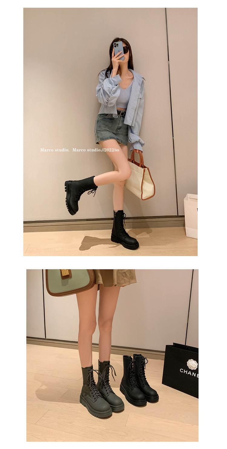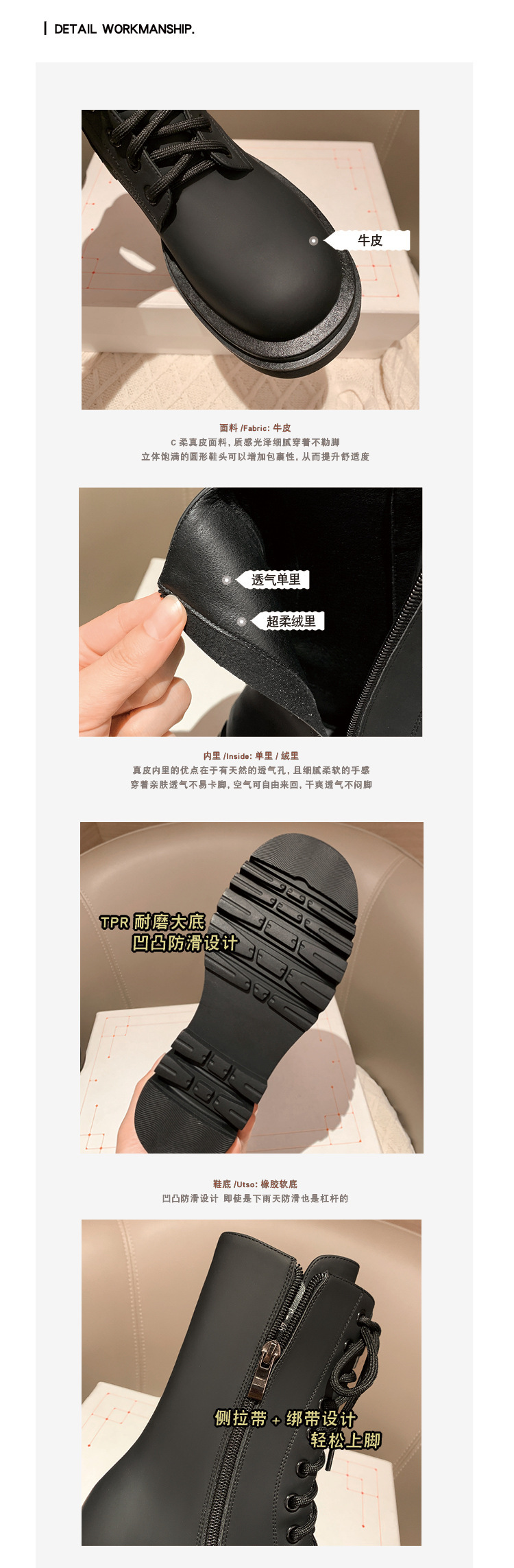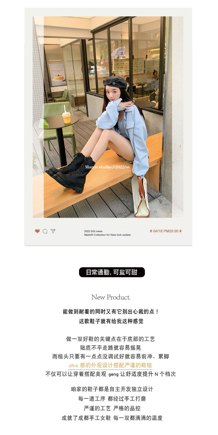 키가 작은 분들을 위한 두꺼운 밑창과 키높이 숏부츠, 브리티시 스타일의 레트로 레이스업 마틴부츠, 여성용 다용도 라운드토 워크부츠, 천연가죽스토어 가기
