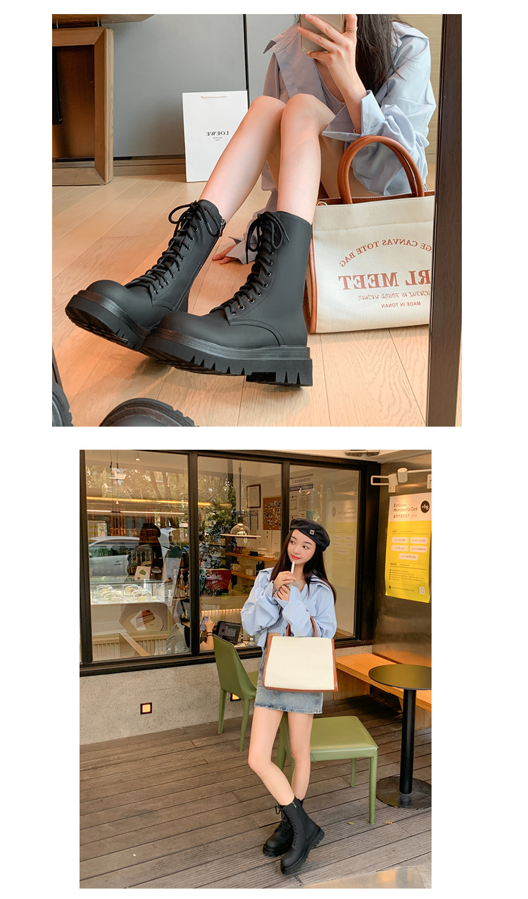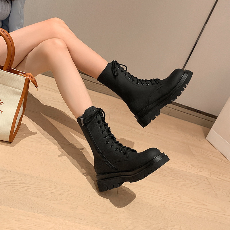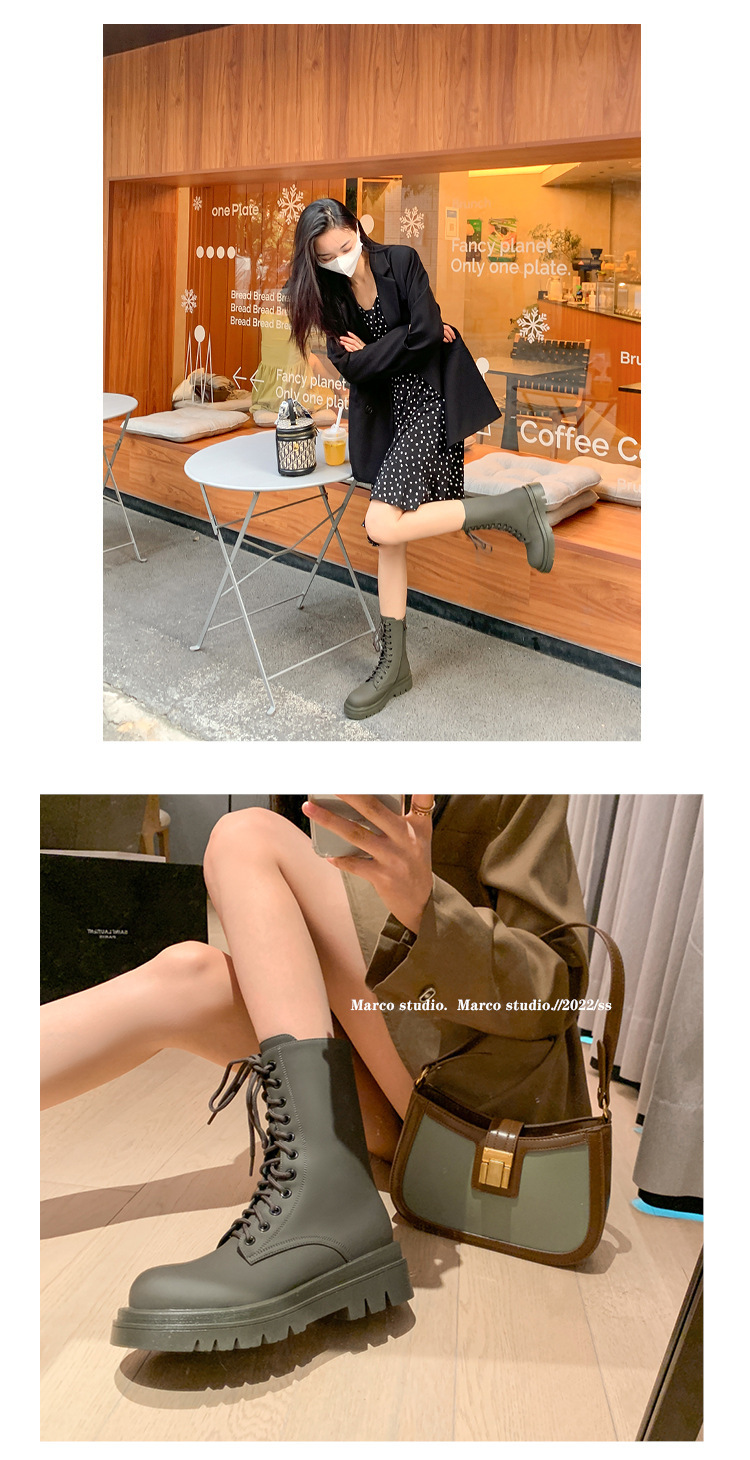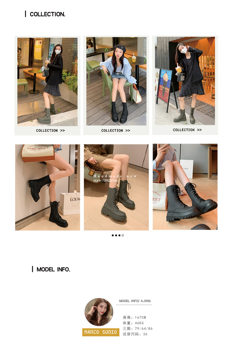 키가 작은 분들을 위한 두꺼운 밑창과 키높이 숏부츠, 브리티시 스타일의 레트로 레이스업 마틴부츠, 여성용 다용도 라운드토 워크부츠, 천연가죽스토어 가기