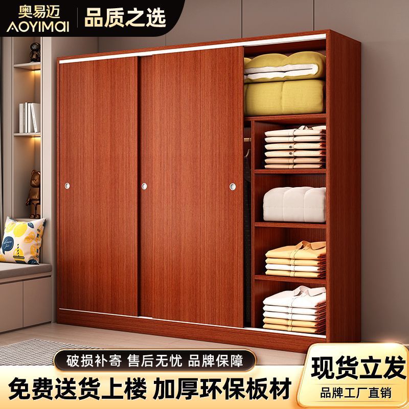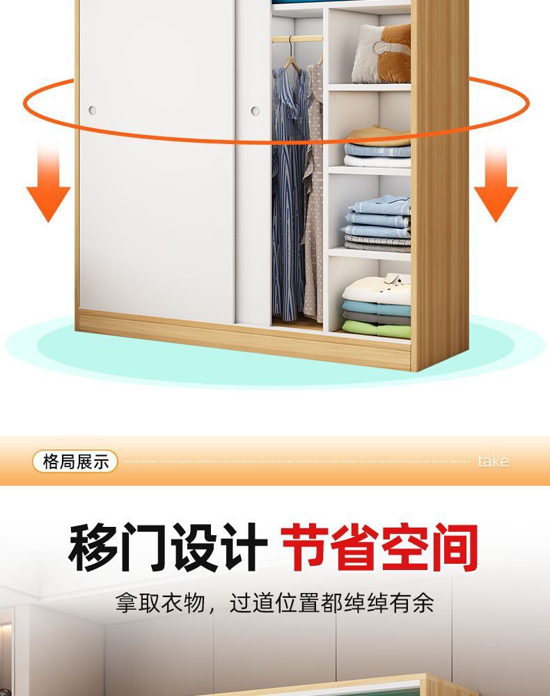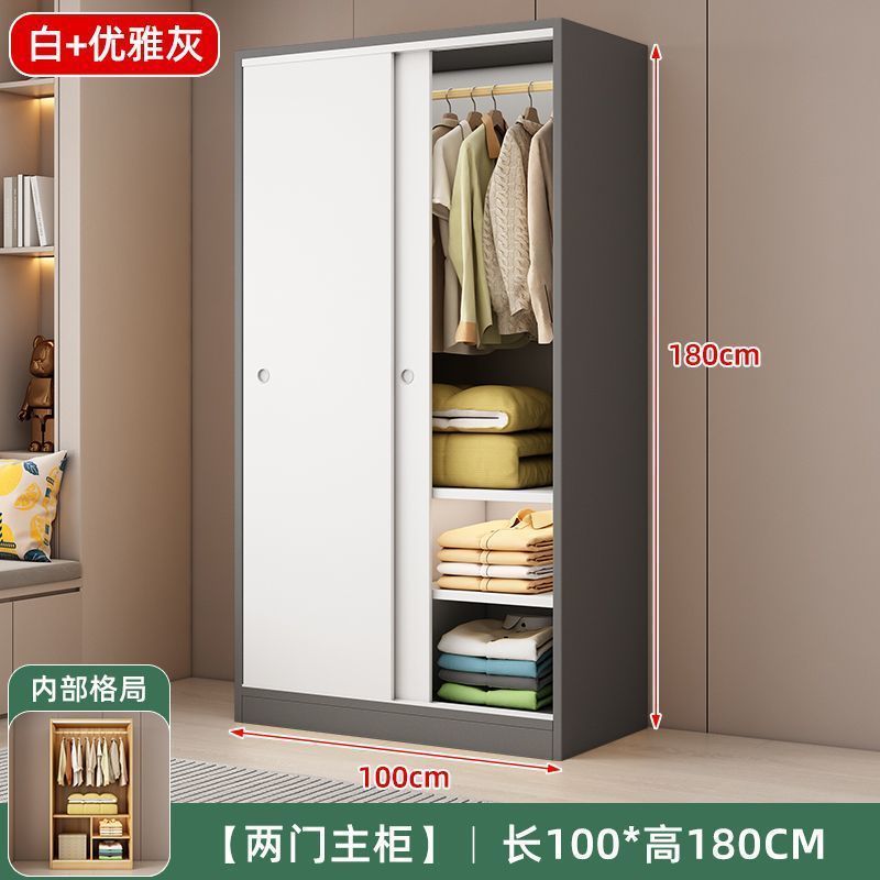 Aoyimai 슬라이딩 도어 옷장 홈 침실 나무 회색 스토리지 캐비닛 작은 아파트 임대 간단한 옷장스토어 가기