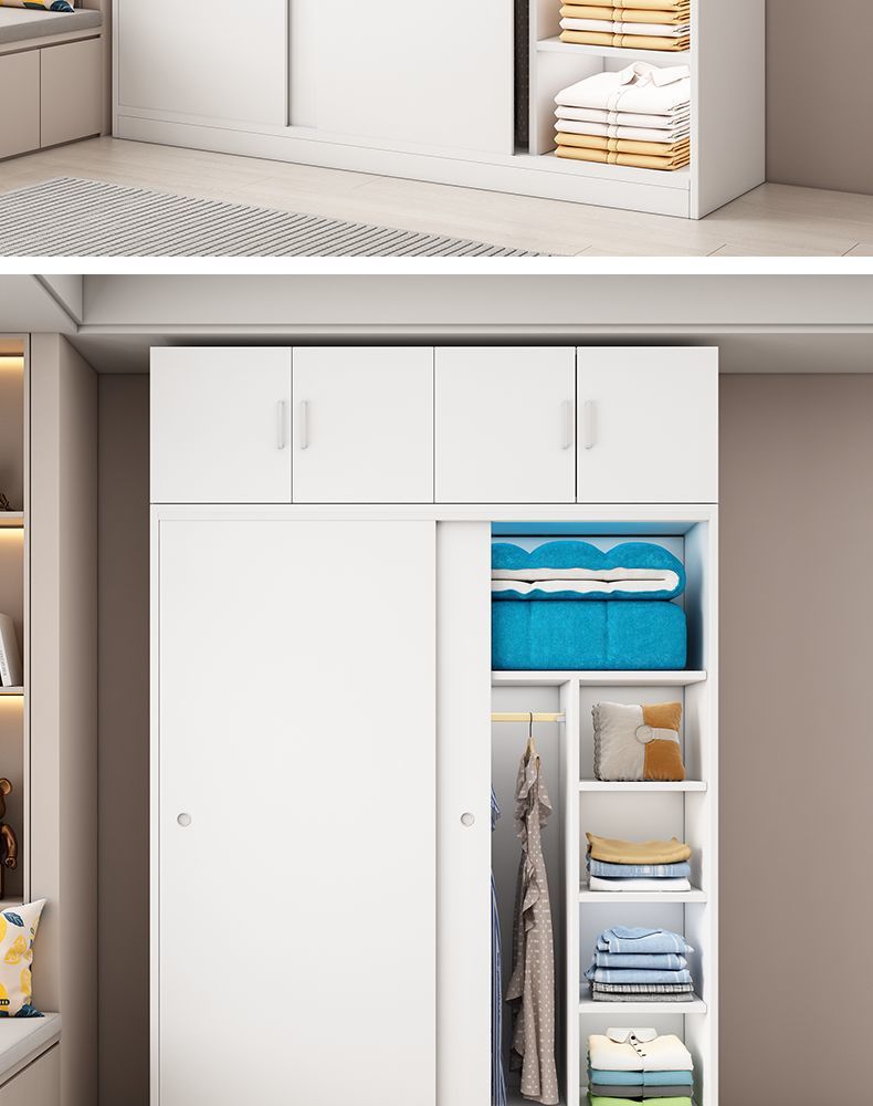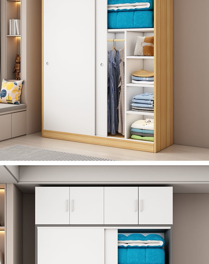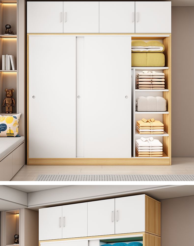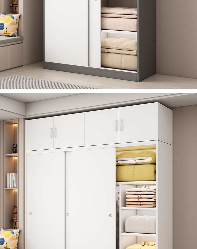 Aoyimai 슬라이딩 도어 옷장 홈 침실 나무 회색 스토리지 캐비닛 작은 아파트 임대 간단한 옷장