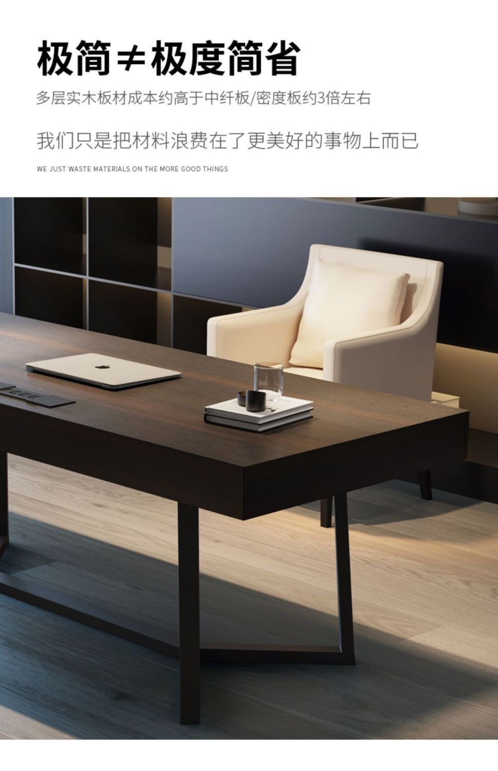 이탈리아 미니멀리스트 책상, 가벼운 럭셔리, 모던한 스모크 우드 거실, 심플한 보스 및 관리자 작업 싱글 인터넷 연예인 책상