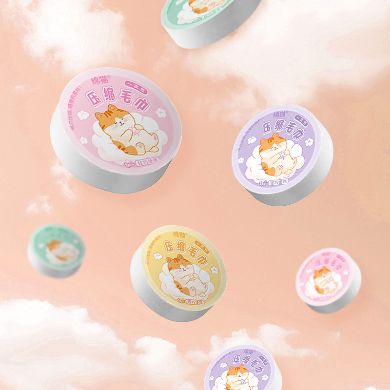• 면고양이 압축목욕타올 [색상 랜덤]