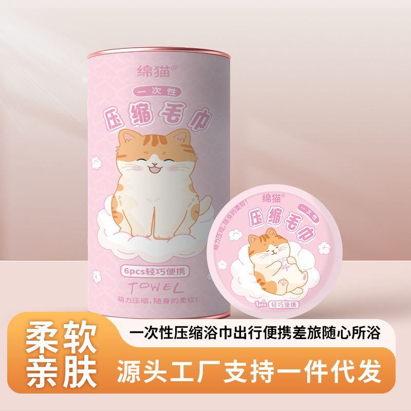 • 코튼캣 핑크 압축타월 [6개/캔]