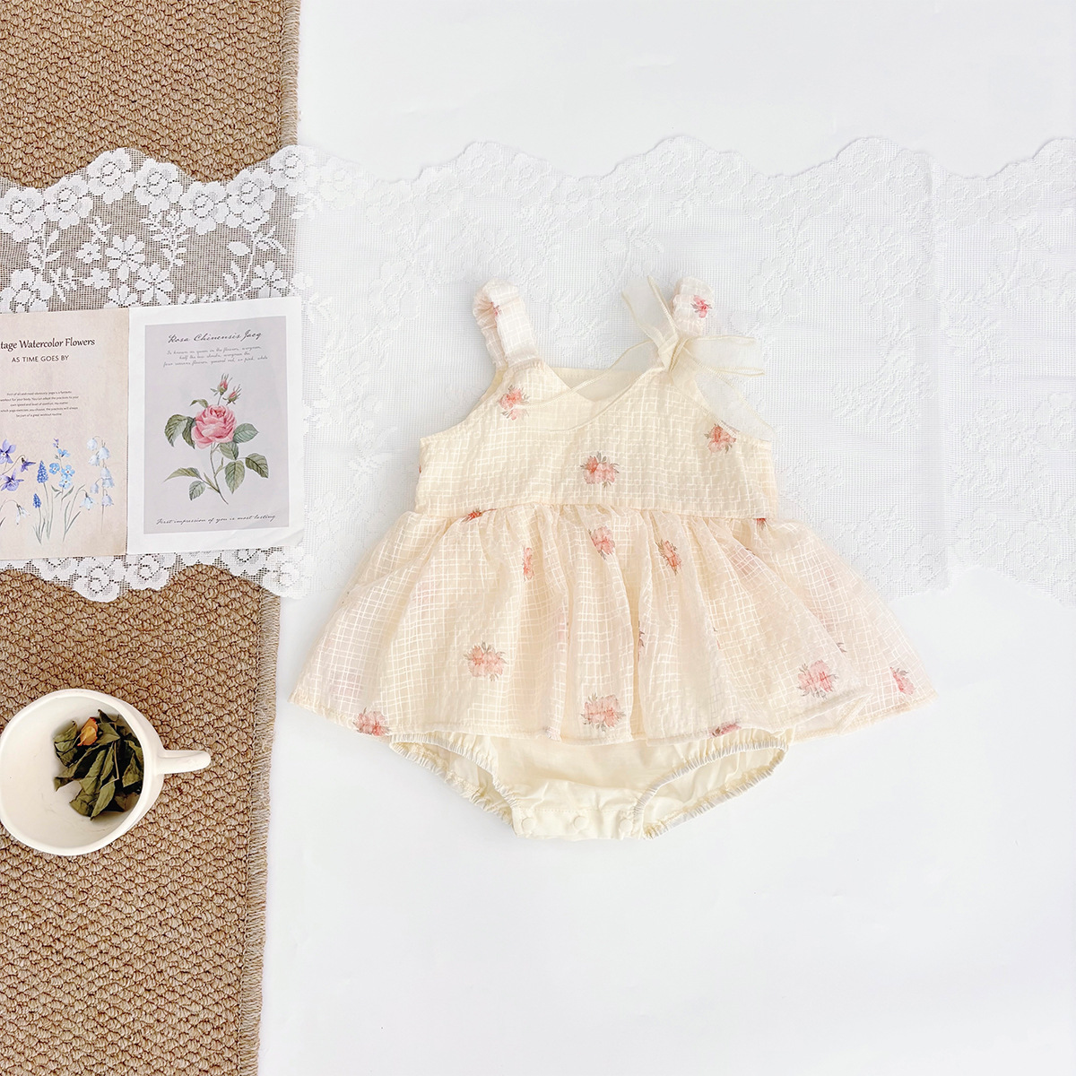 아기옷, 여름얇은 여아 패션 쉬폰 멜빵 꽃무늬 점프수트, 보름달 백일옷