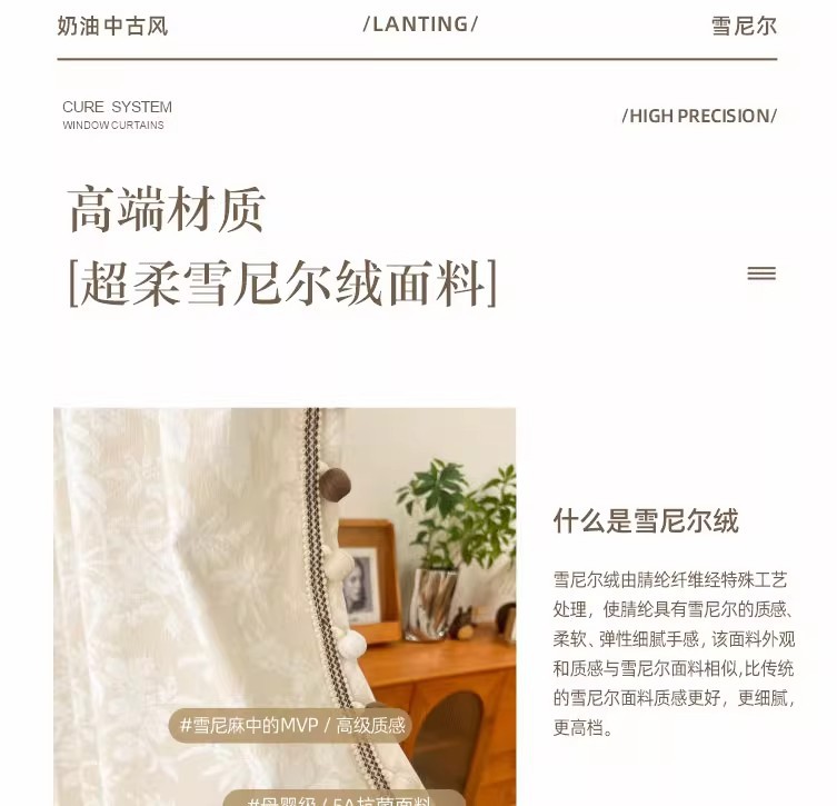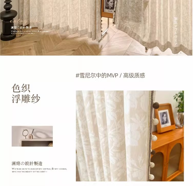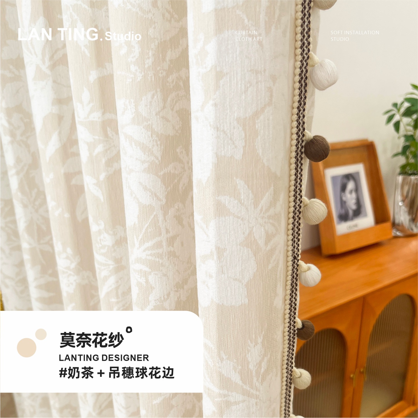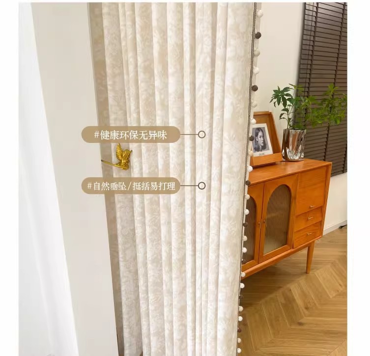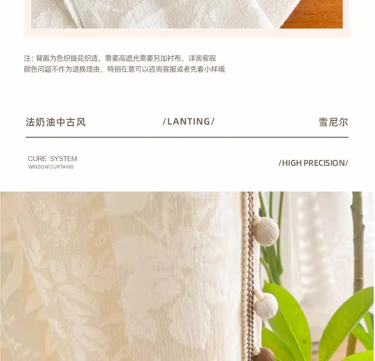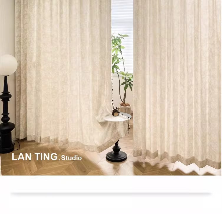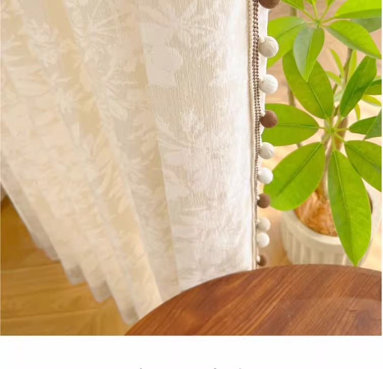 프렌치 크림 스타일 양각 거즈 커튼 2025 새로운 스타일의 투명하고 불투명한 거실 발코니 고급 중세 스타일 창 스크린