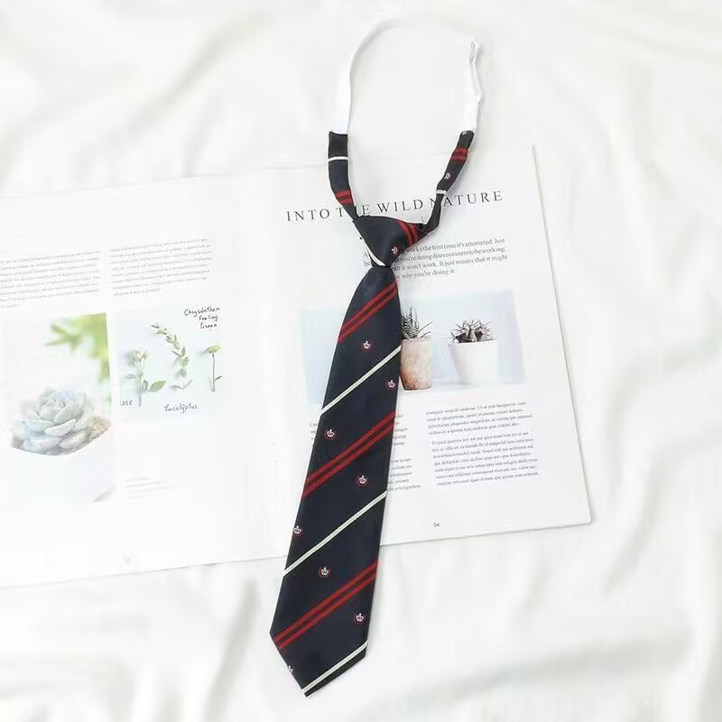 JK 넥타이 여성 한국식 일본 대학 스타일 매듭없는 부르고뉴 복고풍 줄무늬 학생 교복 유니폼 액세서리 유행