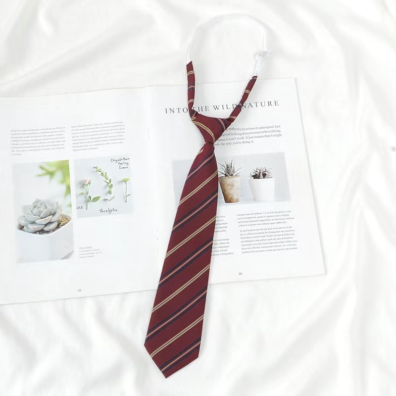 JK 넥타이 여성 한국식 일본 대학 스타일 매듭없는 부르고뉴 복고풍 줄무늬 학생 교복 유니폼 액세서리 유행스토어 가기