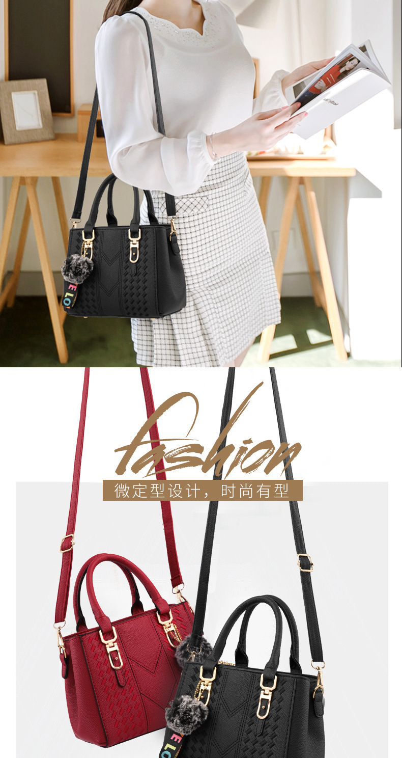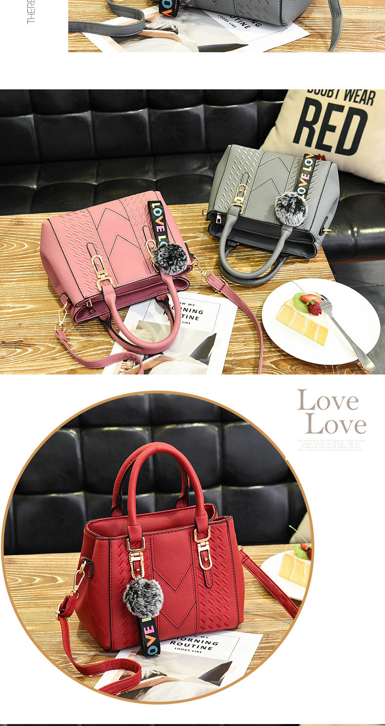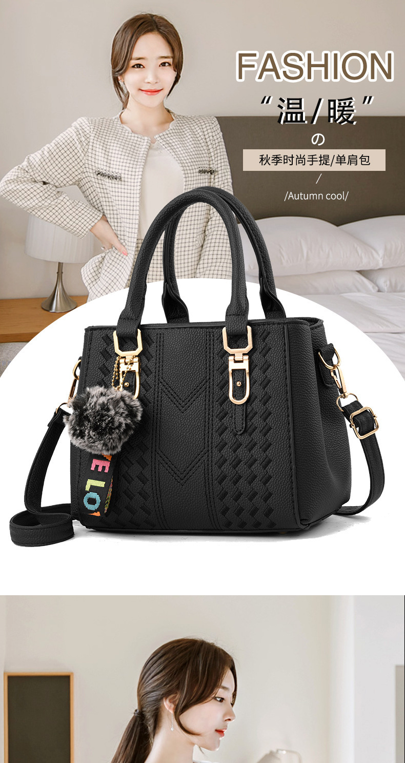 包包女2025新款潮欧美手提包毛球挂件简约单肩斜挎包女士包袋