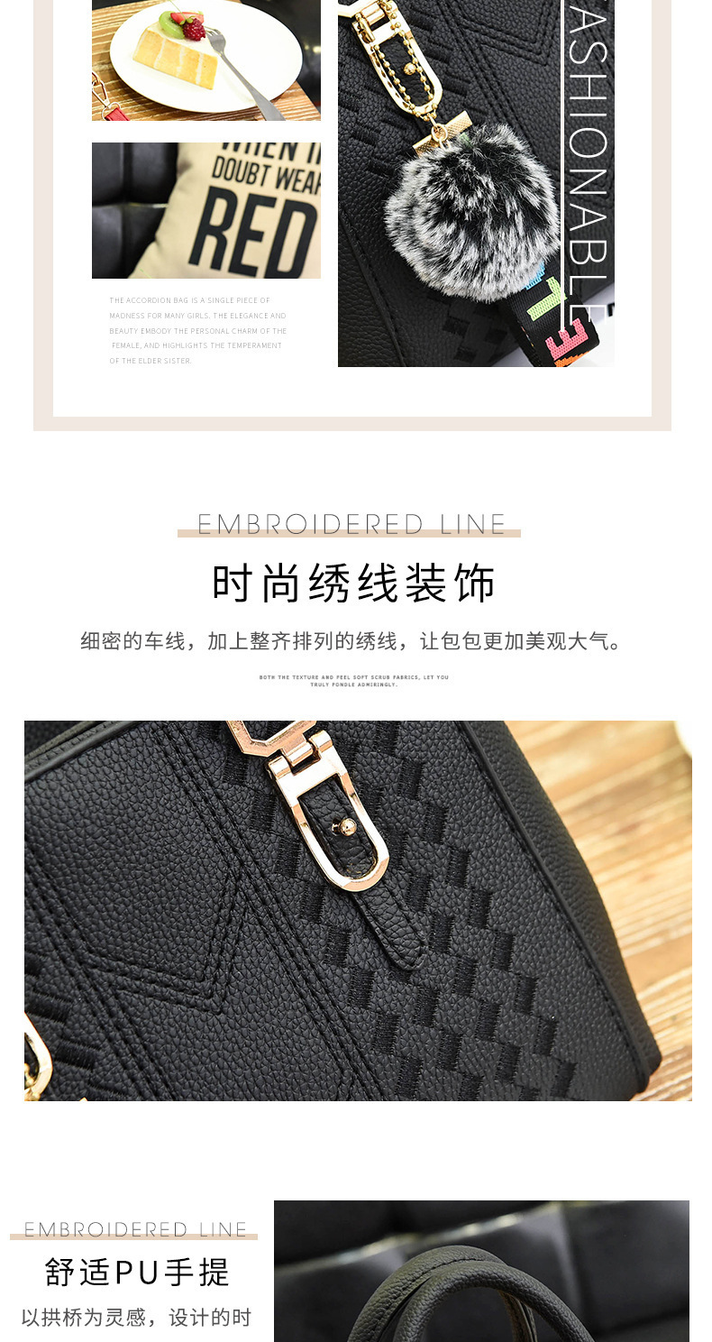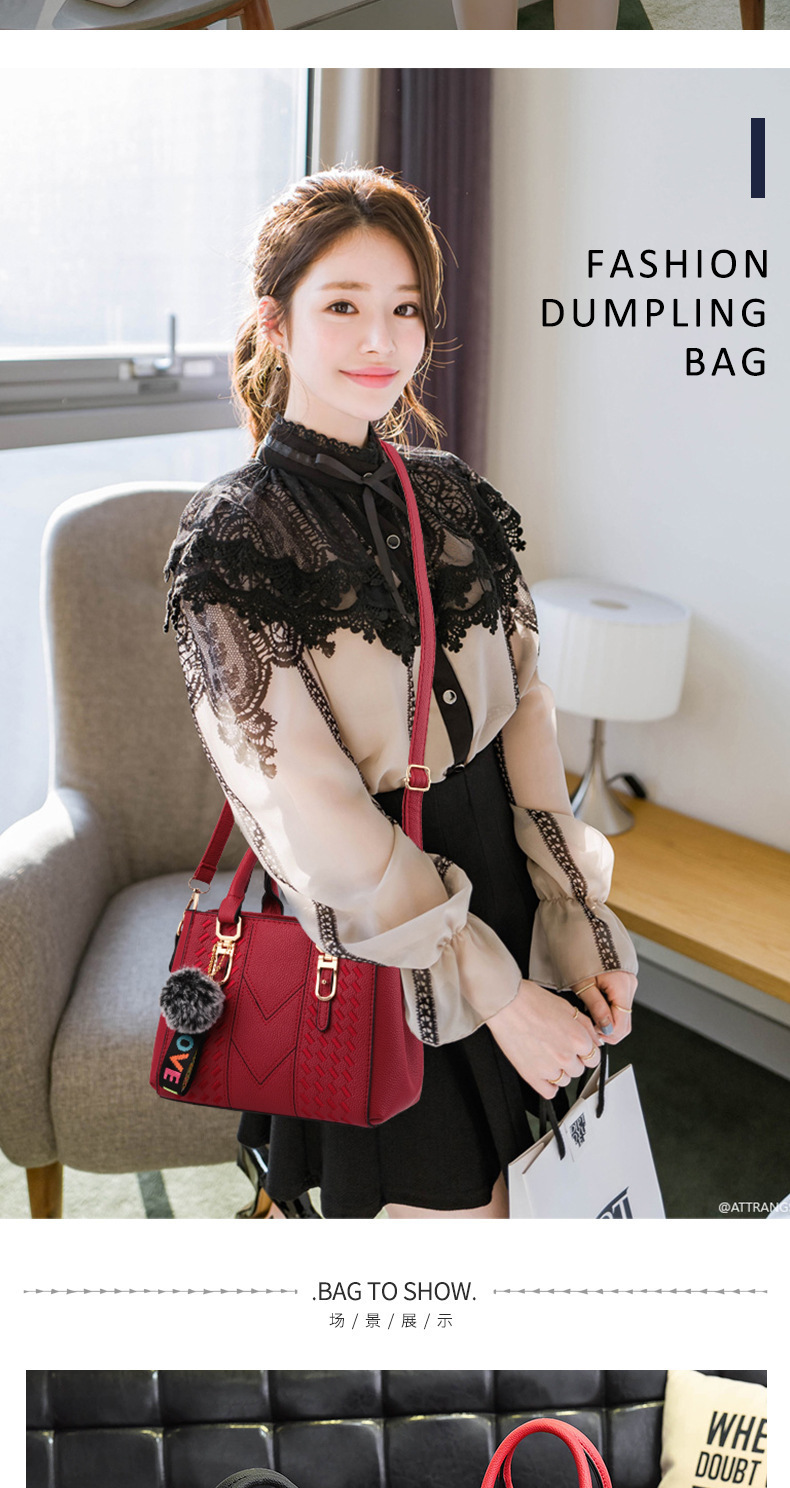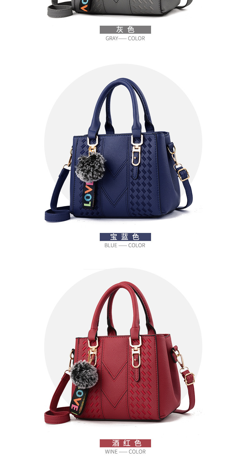 包包女2025新款潮欧美手提包毛球挂件简约单肩斜挎包女士包袋