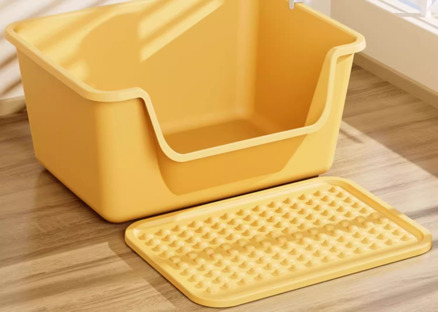 • [크림옐로우 50CM 고양이 배변 상자 + 오리지널 실리콘 발 프린트 고양이 배변 매트] 미끄럼 방지 모래 필터 세트