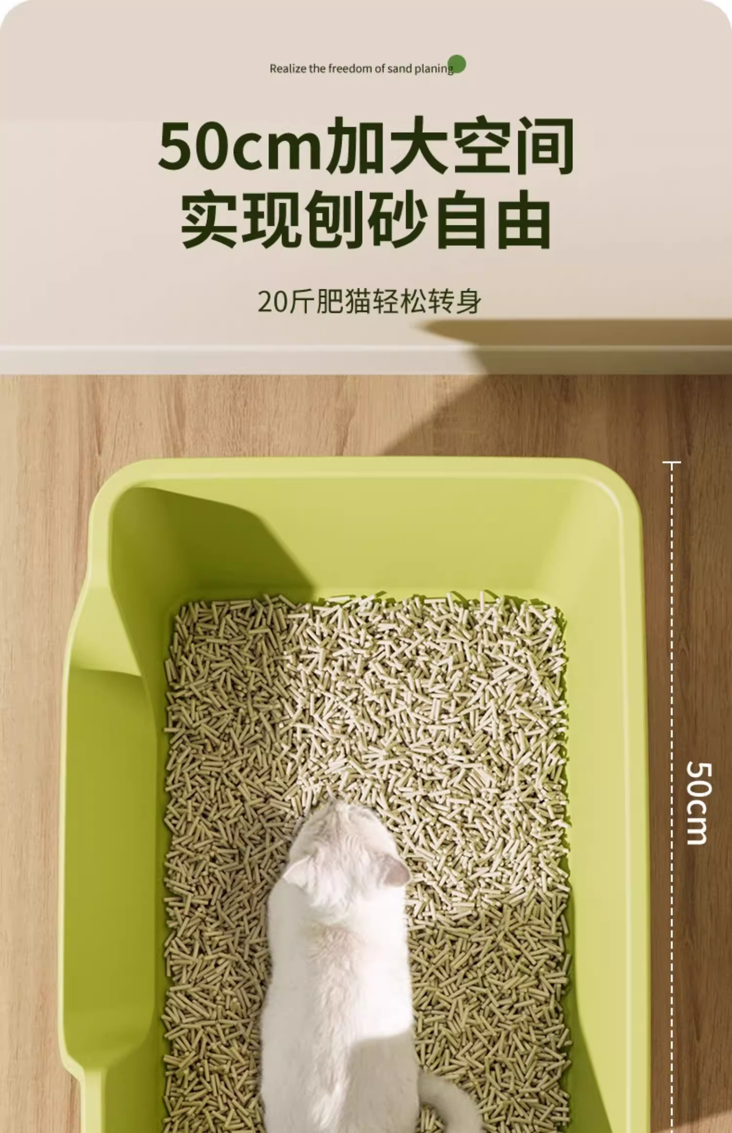 • [말차 그린 50CM 고양이 배변 상자 + 오리지널 실리콘 발 프린트 고양이 배변 매트] 미끄럼 방지 필터 모래 세트