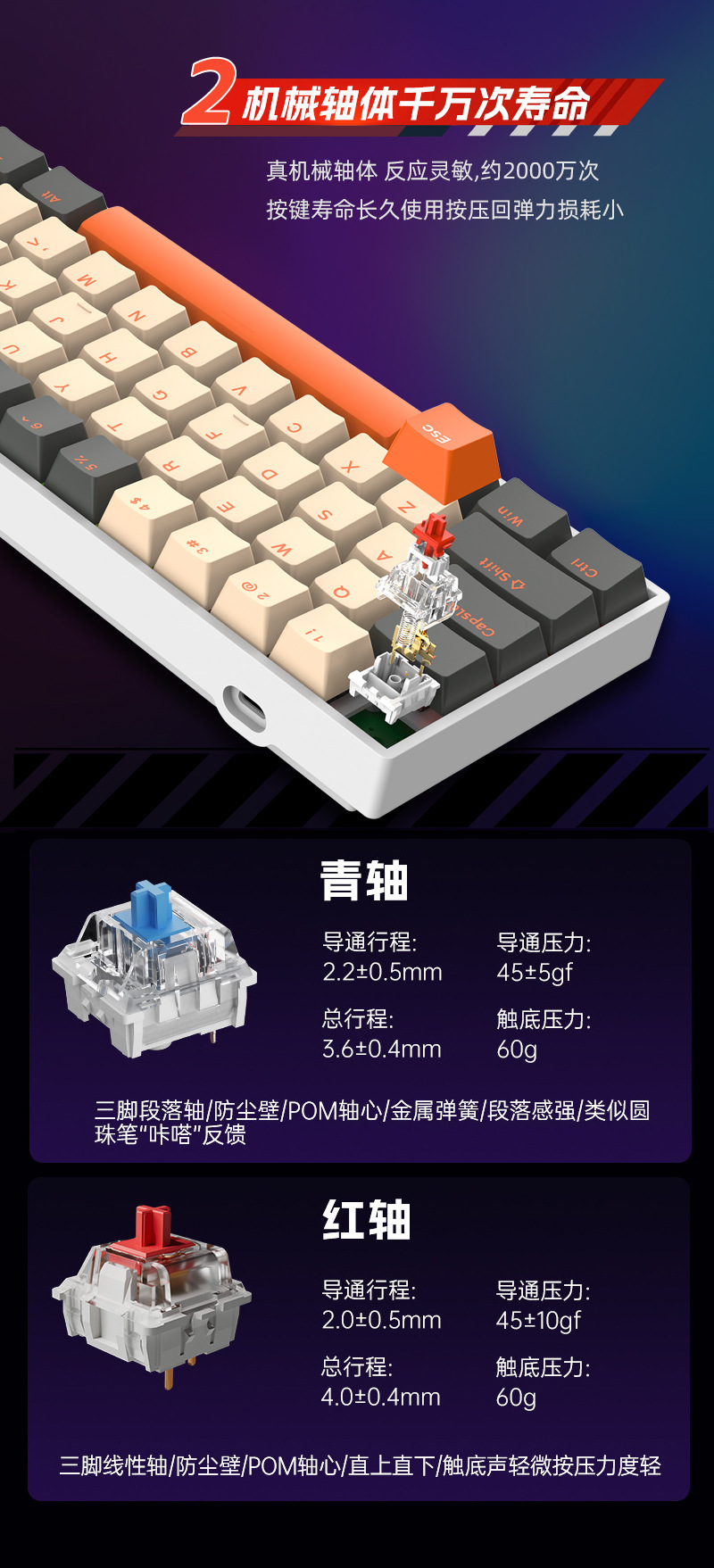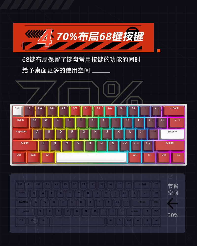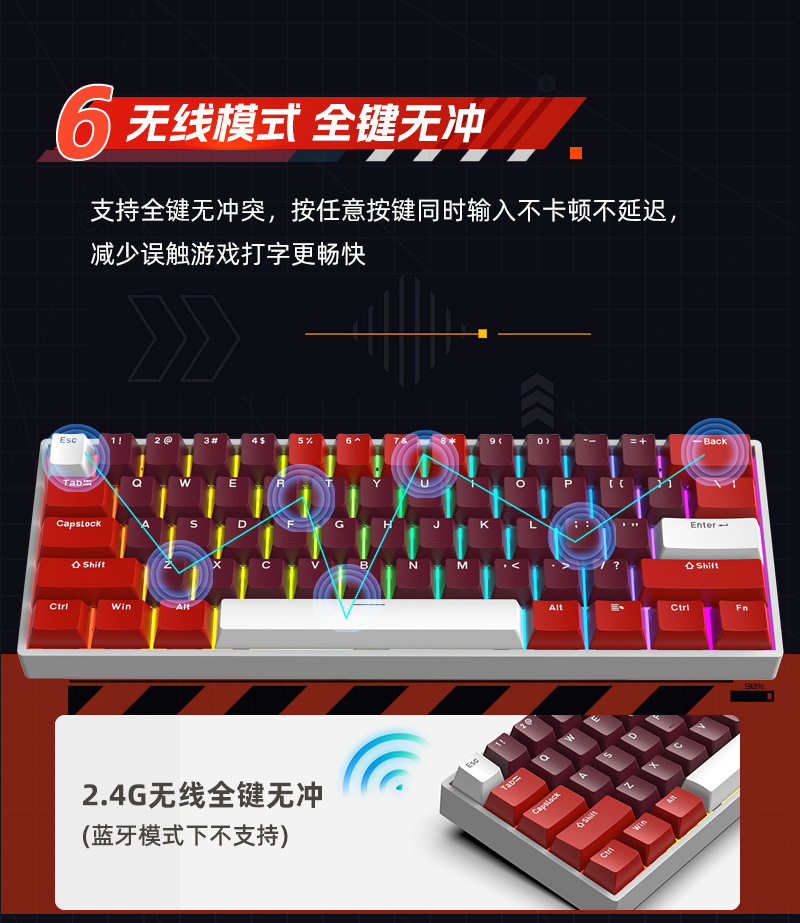 크로스보더 현물상품 K33 3모드 무선 블루투스 유선 61키 RGB 커스터마이징 가능 기계식 키보드 핫스왑 러시아어 지원스토어 가기