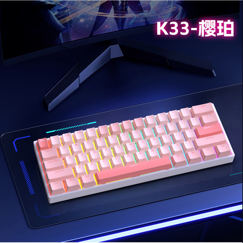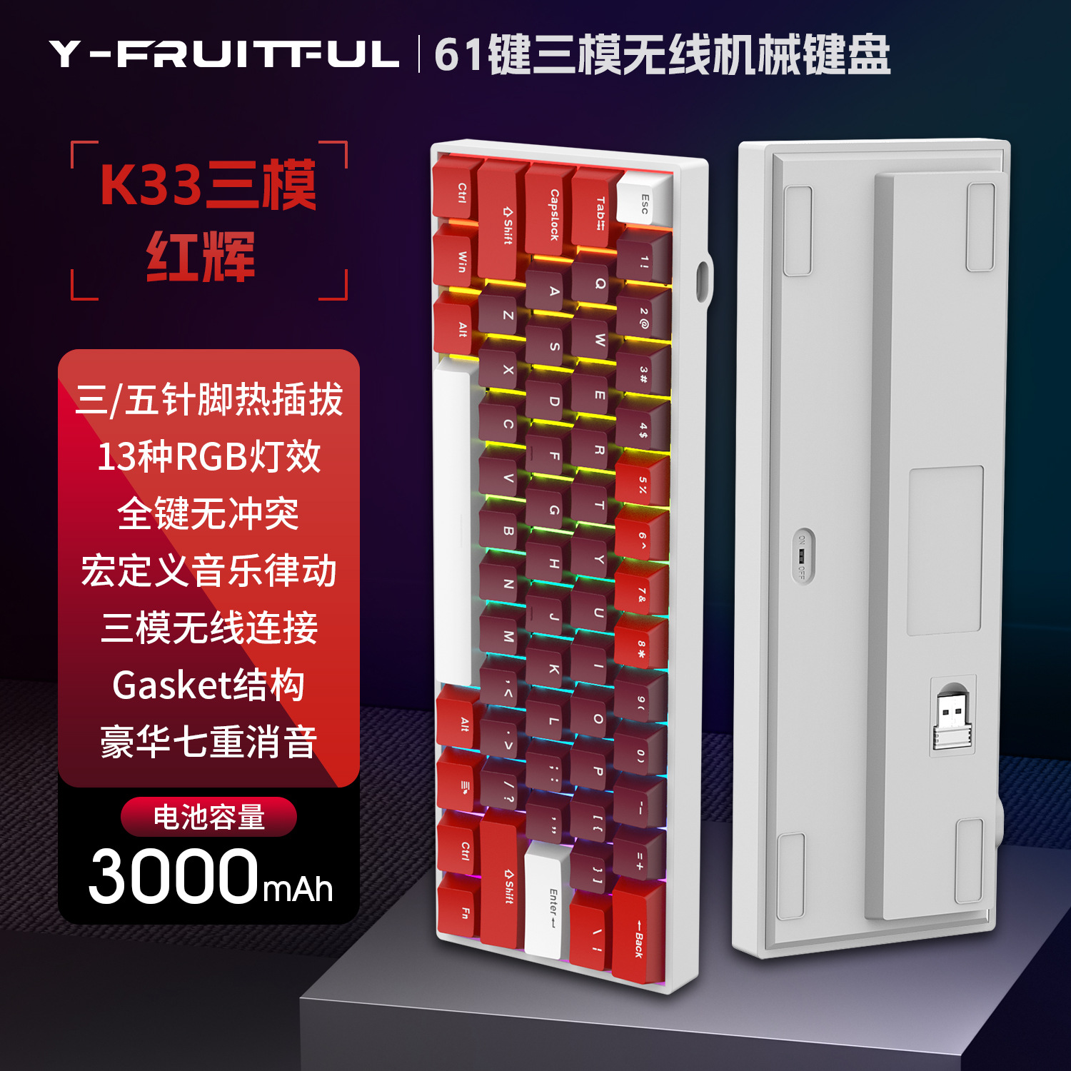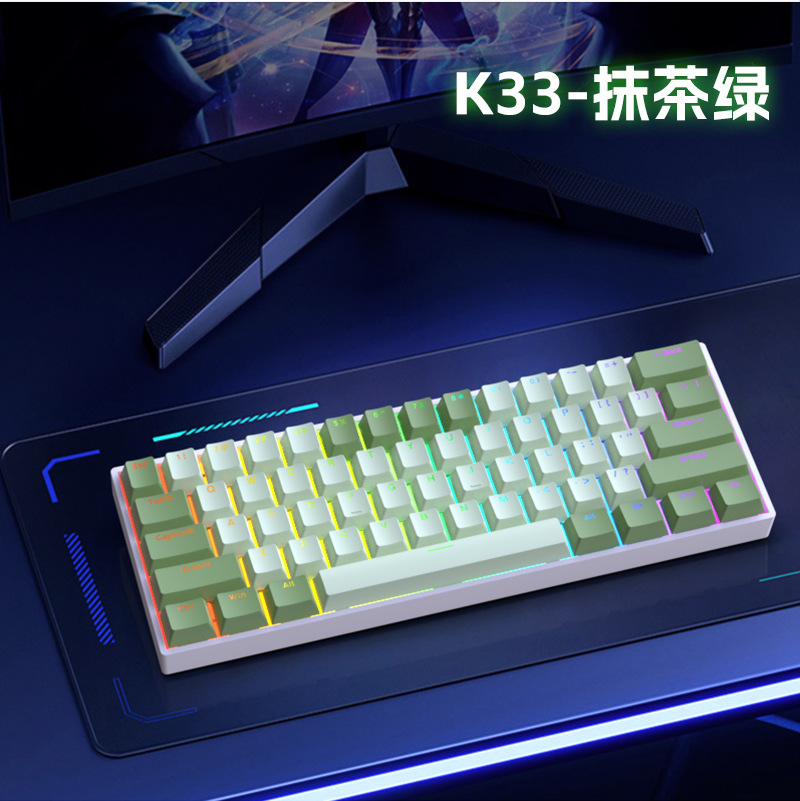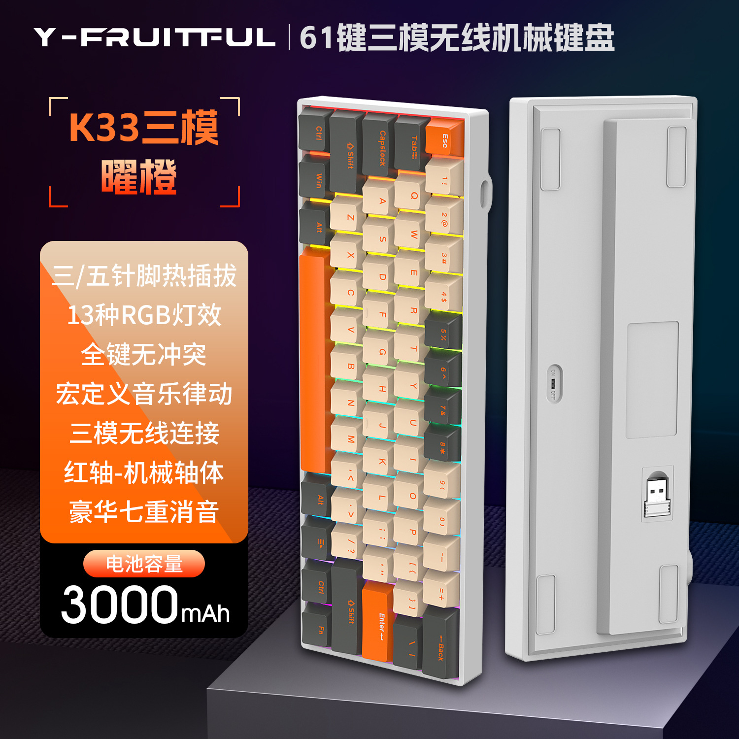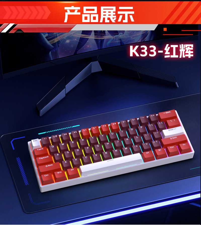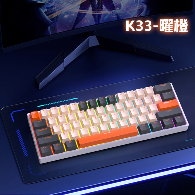 크로스보더 현물상품 K33 3모드 무선 블루투스 유선 61키 RGB 커스터마이징 가능 기계식 키보드 핫스왑 러시아어 지원