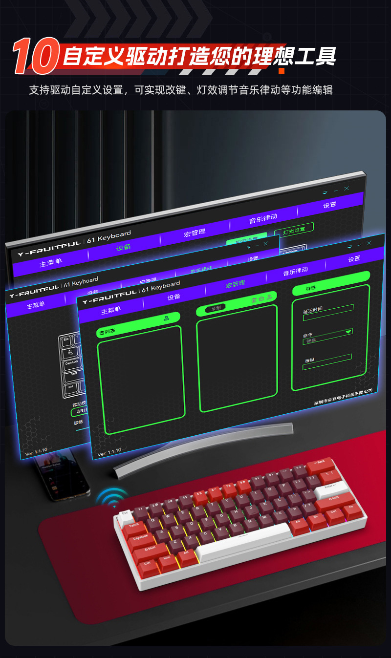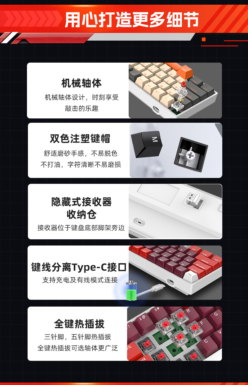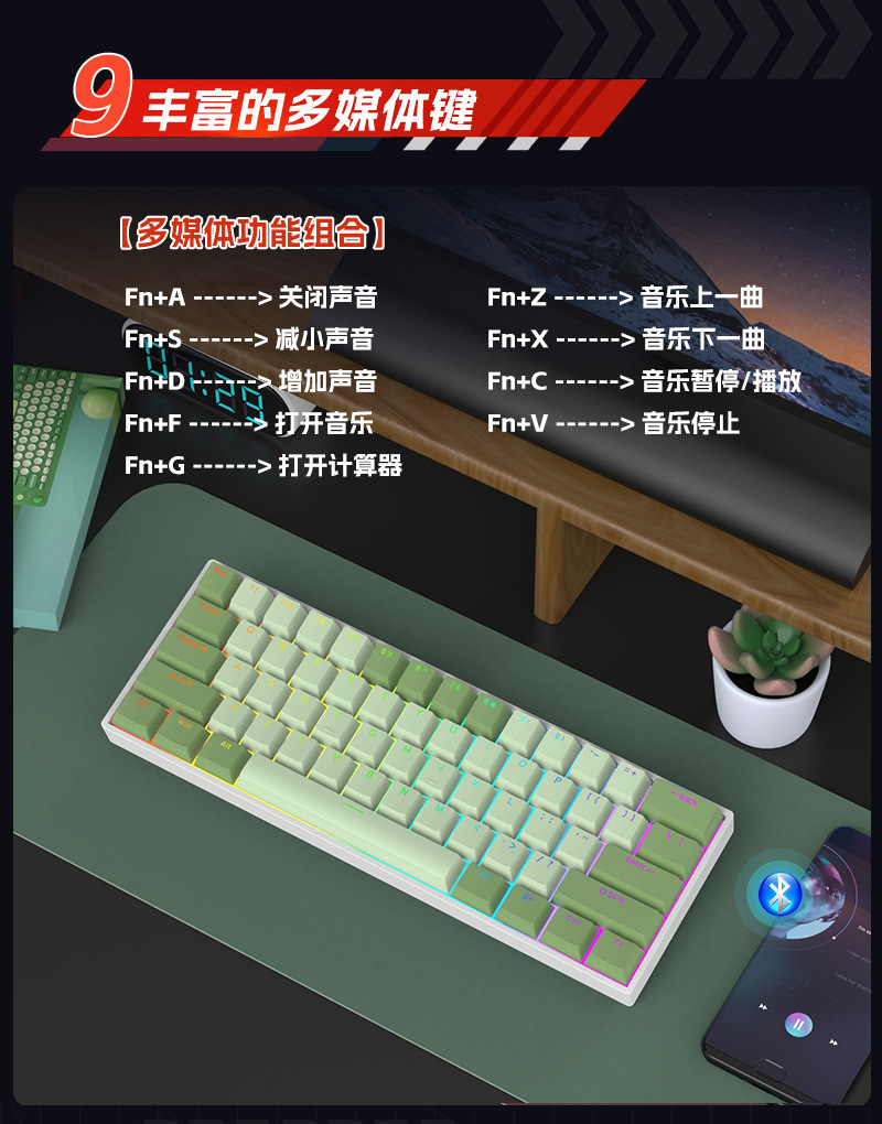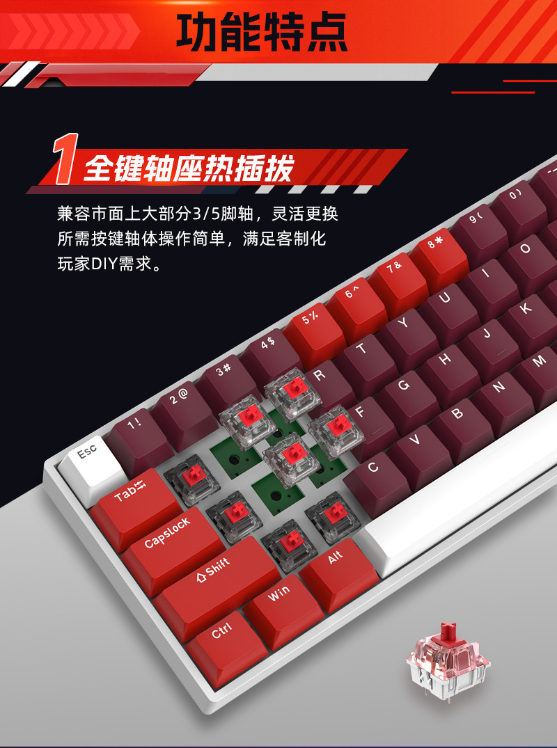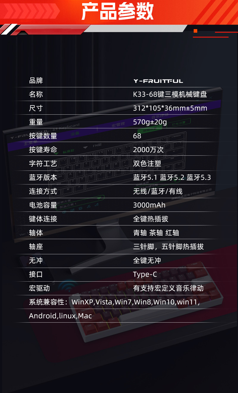 크로스보더 현물상품 K33 3모드 무선 블루투스 유선 61키 RGB 커스터마이징 가능 기계식 키보드 핫스왑 러시아어 지원