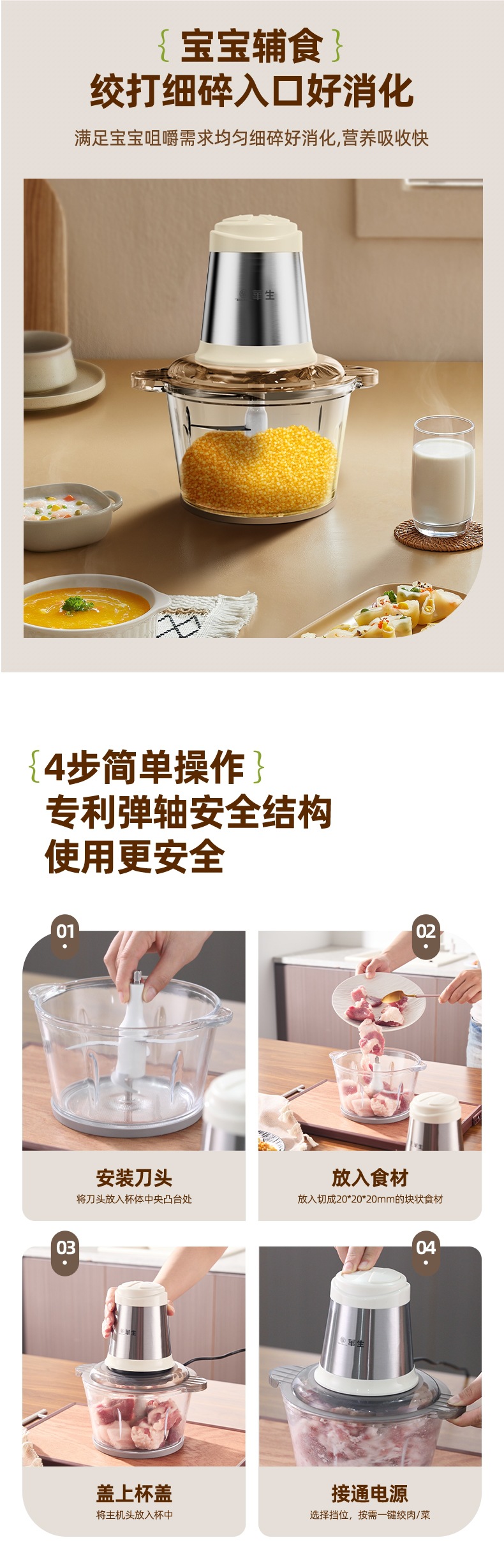 왓슨 고기 분쇄기 스테인레스 스틸 완전 자동 대용량 믹서 가정용 전기 다기능 믹서 소형