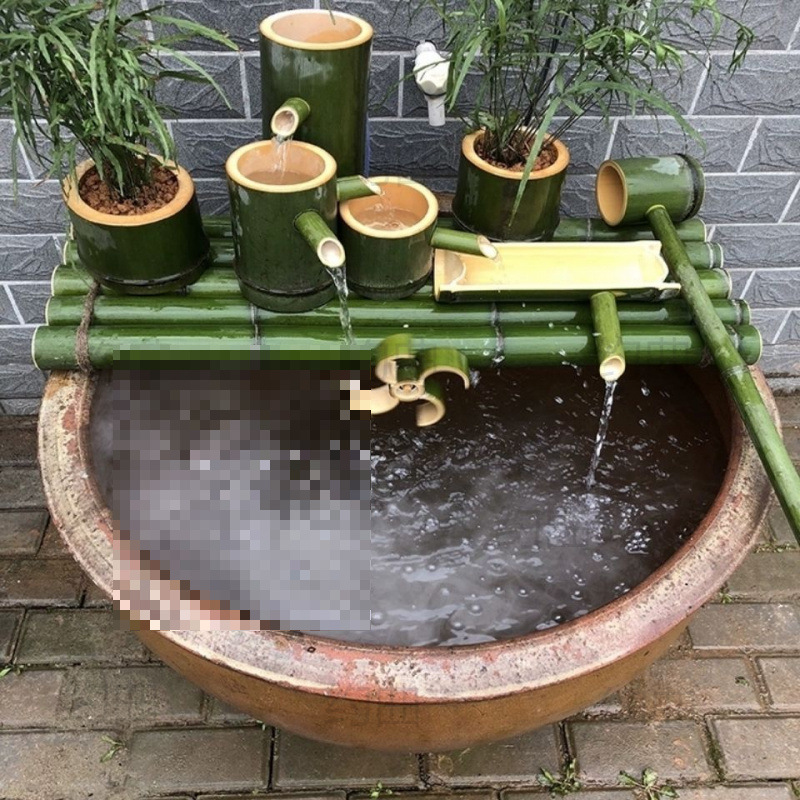 대나무 물 분배기 자동 수조 세라믹 스톤 트렁크 순환 물 분수 대나무 튜브 산소화 가습 필터 Pingrun스토어 가기