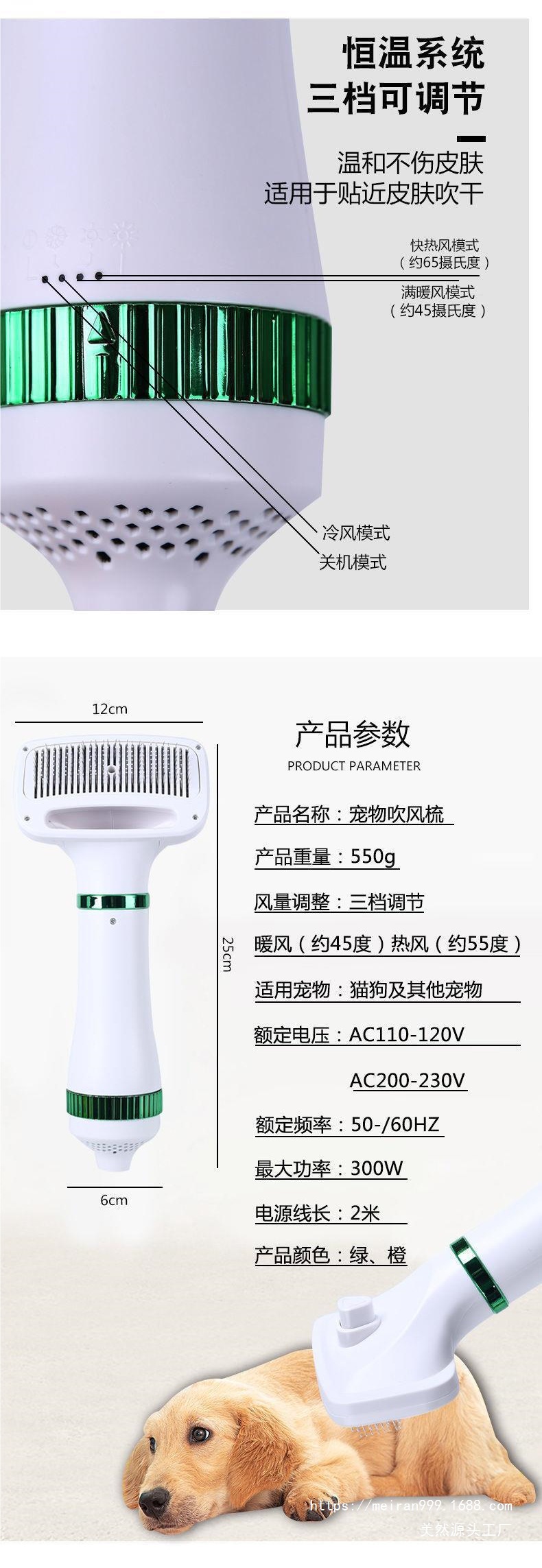 애완 동물 헤어 드라이어 2-in-1 고양이 및 개 헤어 드라이어 전기 청소 및 미용 애완 동물 빗 뜨거운 공기 빗 재고 있음 도매스토어 가기