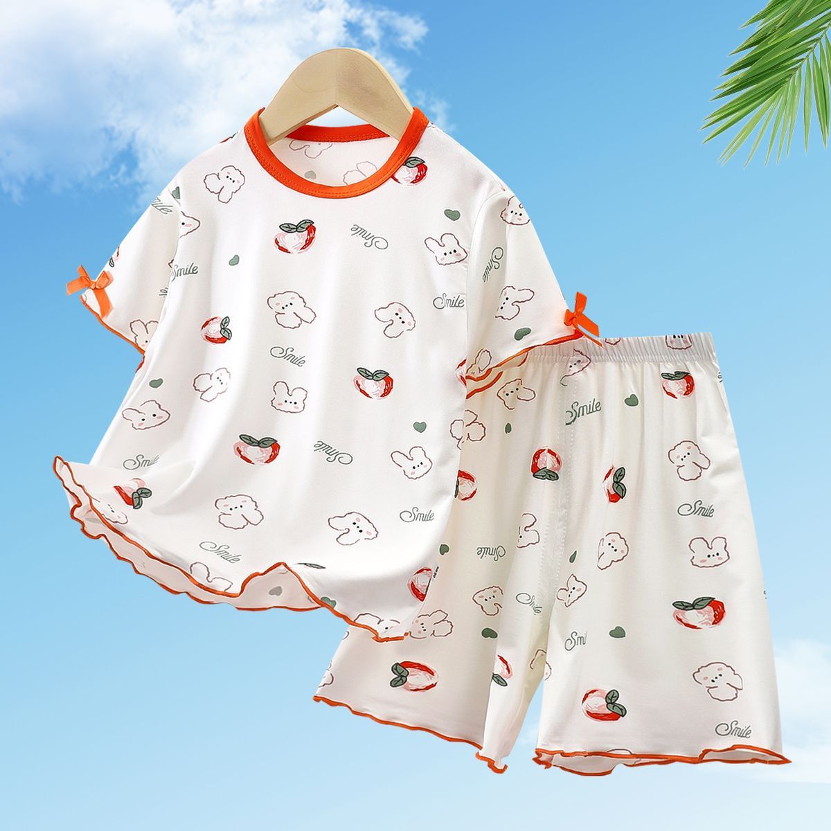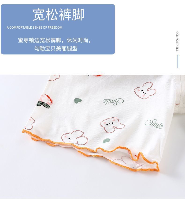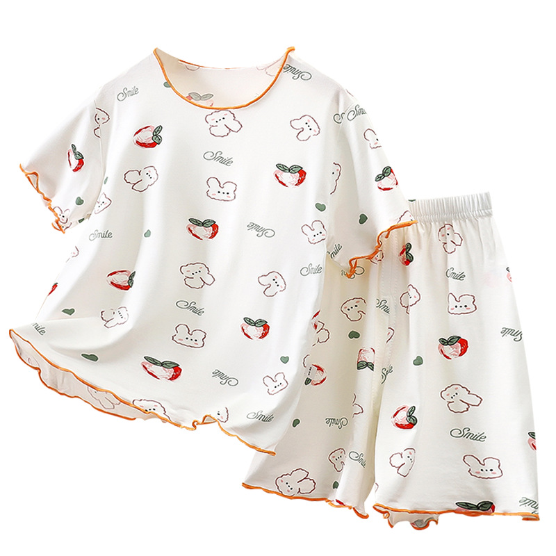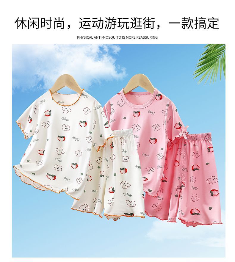 모달 소녀 반팔 잠옷 세트 새로운 어린이 여름 에어컨 가정 의류 소녀 아기 얇은 토끼 모피