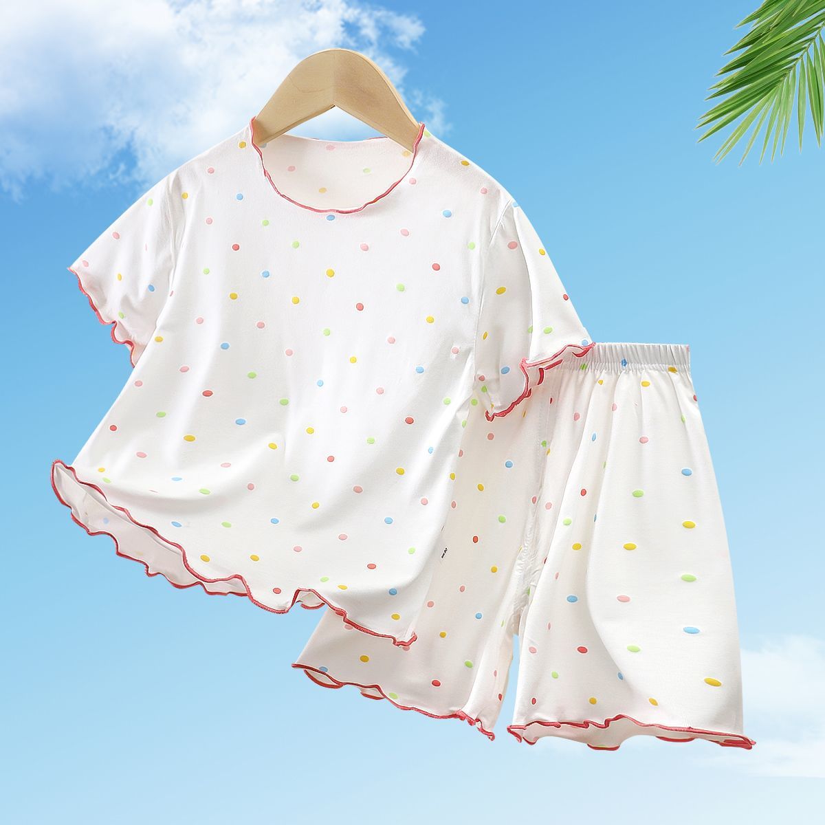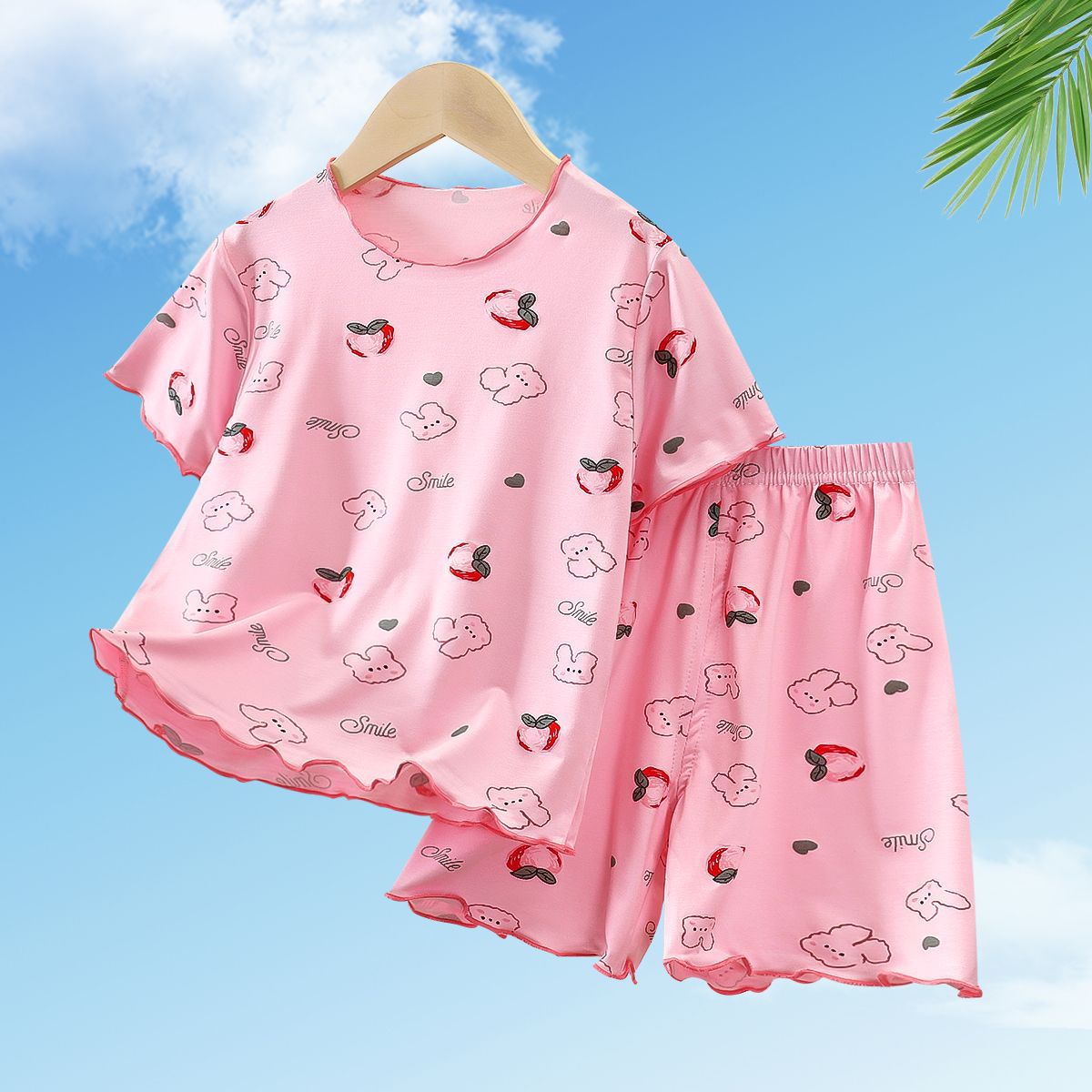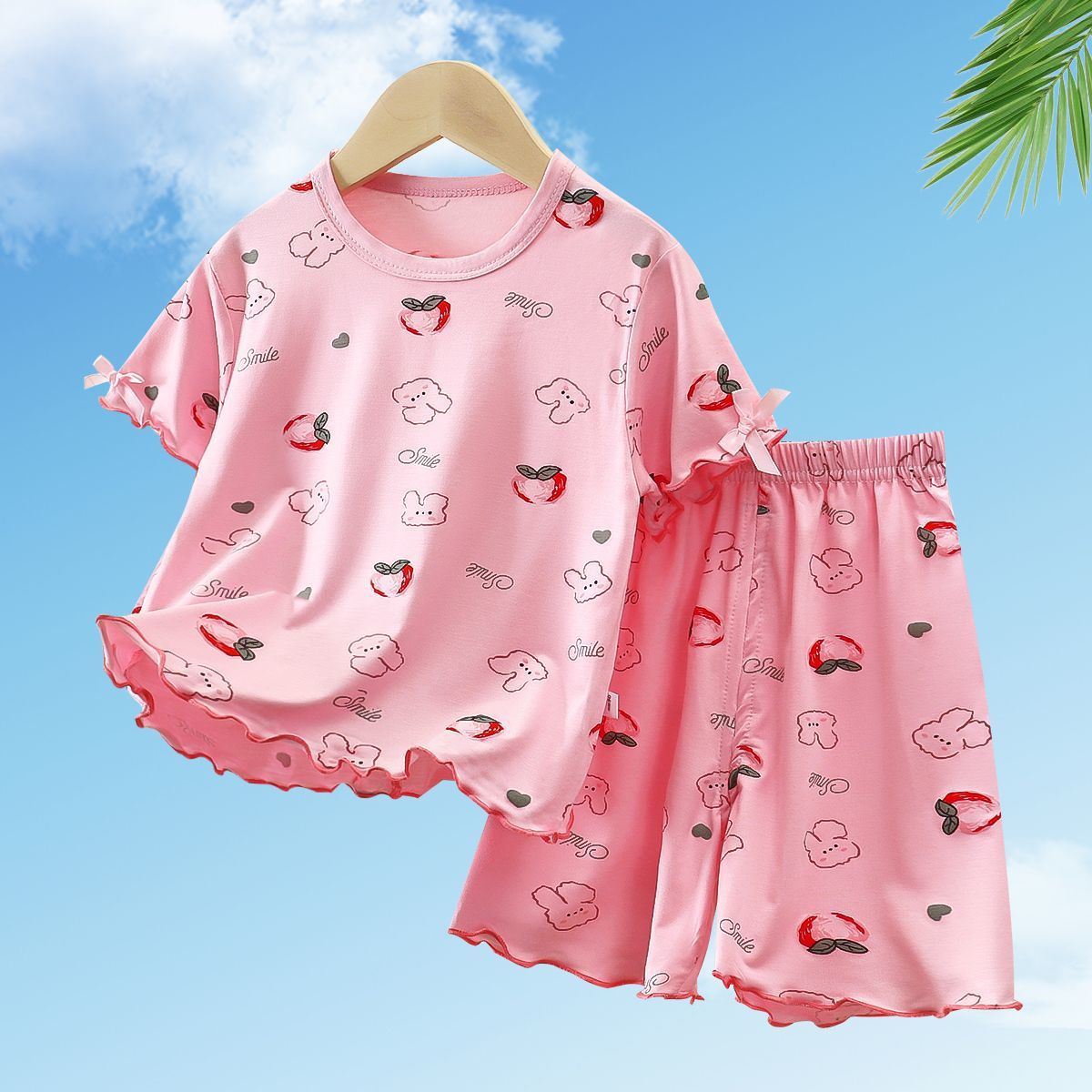 모달 소녀 반팔 잠옷 세트 새로운 어린이 여름 에어컨 가정 의류 소녀 아기 얇은 토끼 모피