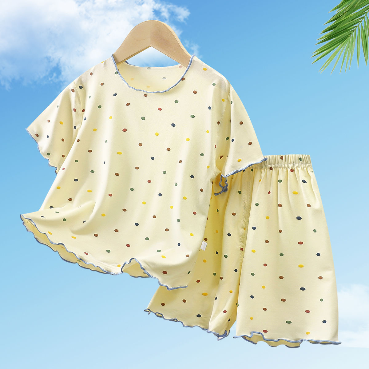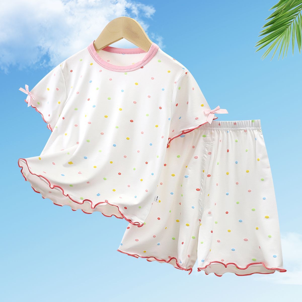 모달 소녀 반팔 잠옷 세트 새로운 어린이 여름 에어컨 가정 의류 소녀 아기 얇은 토끼 모피스토어 가기