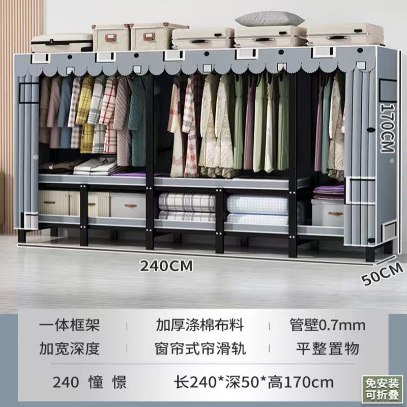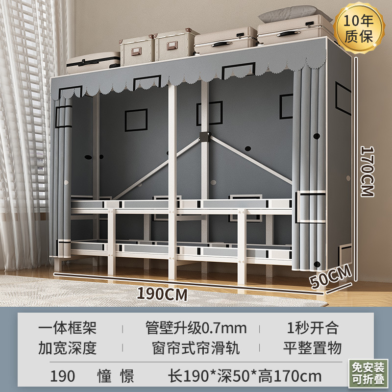일체형 접이식 옷장, 가정용 침실, 전체 강철 프레임, 간이 옷장, 임대실 수납, 바닥형 천 옷장
