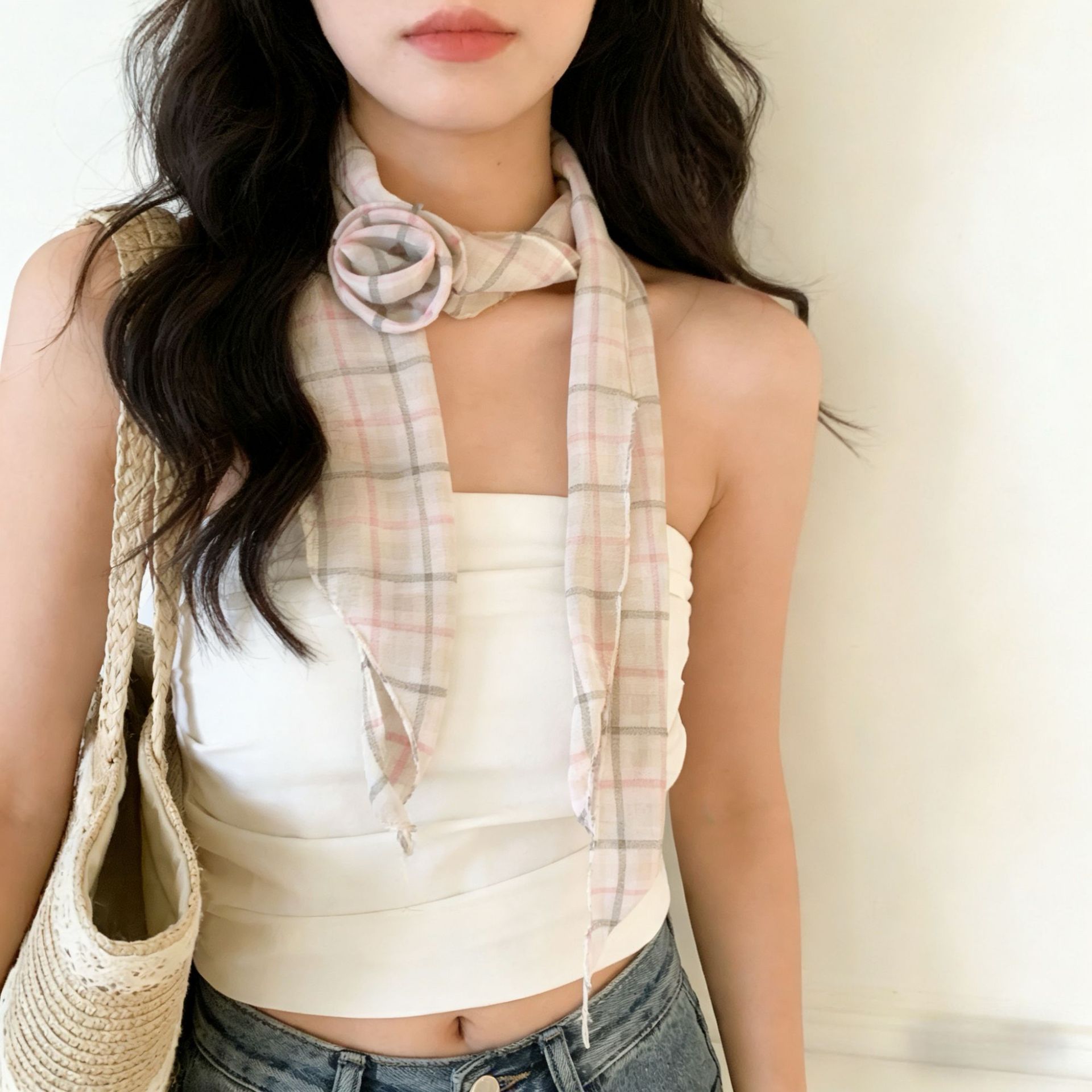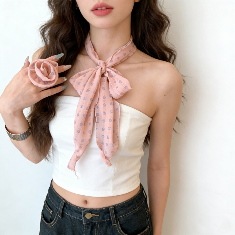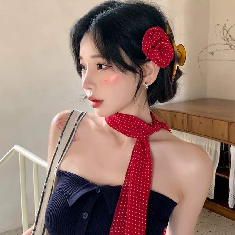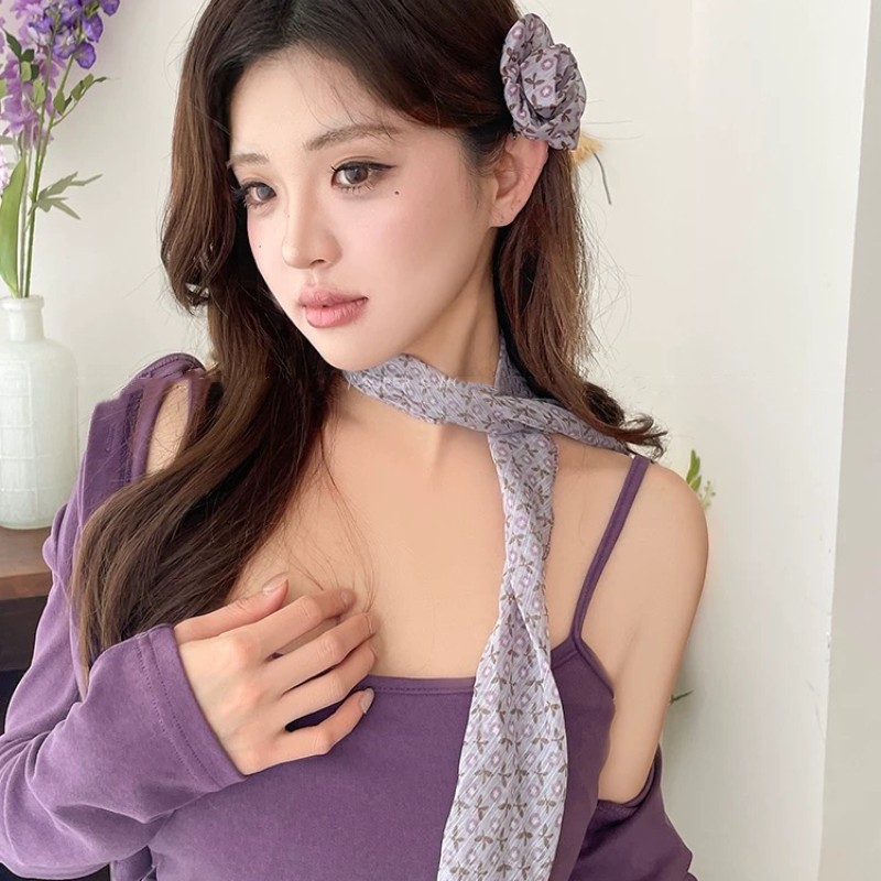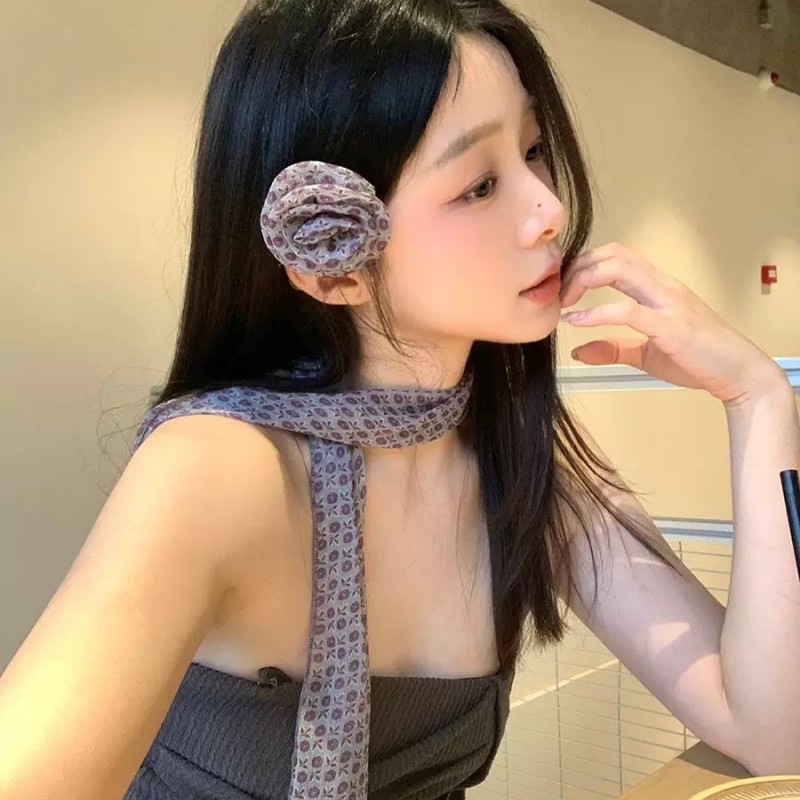 2025 새로운 순수한 욕망 스타일 분리형 장미 꽃 머리핀 실크 스카프 벨트 헤어 밴드 한국 스타일 분위기 스카프
