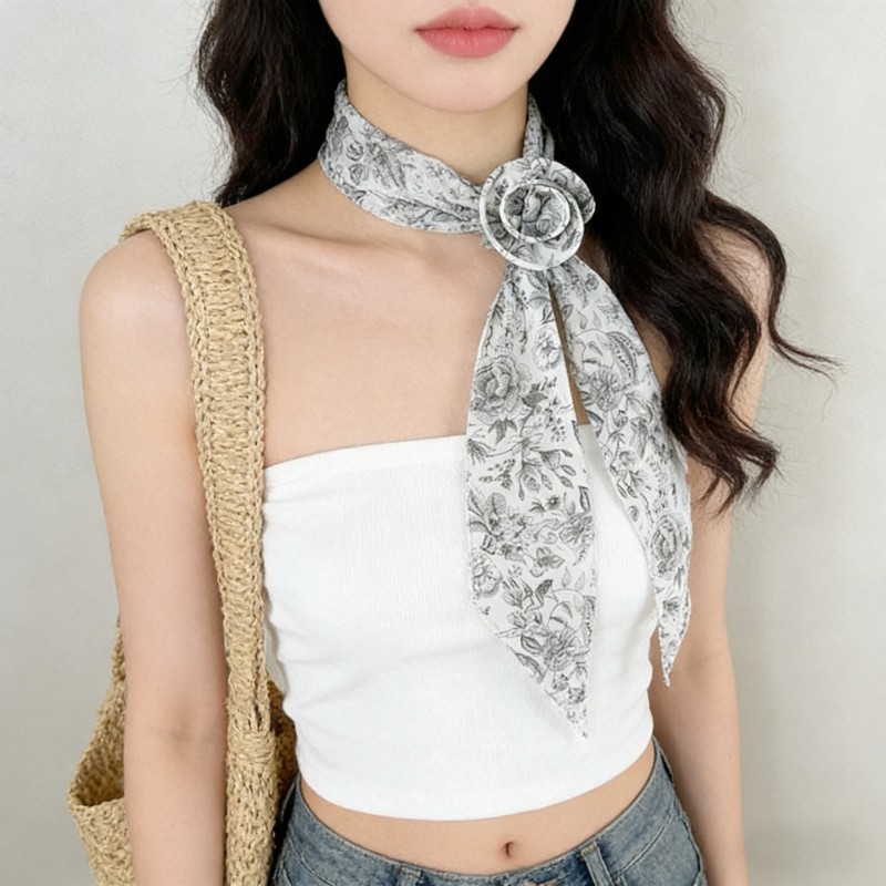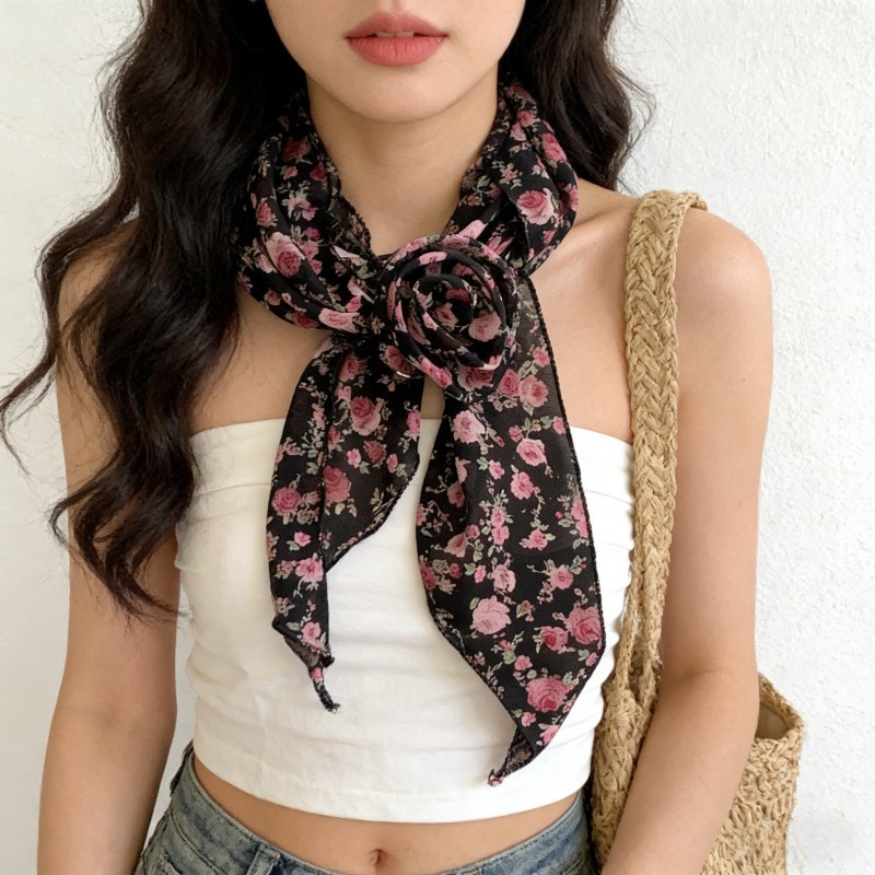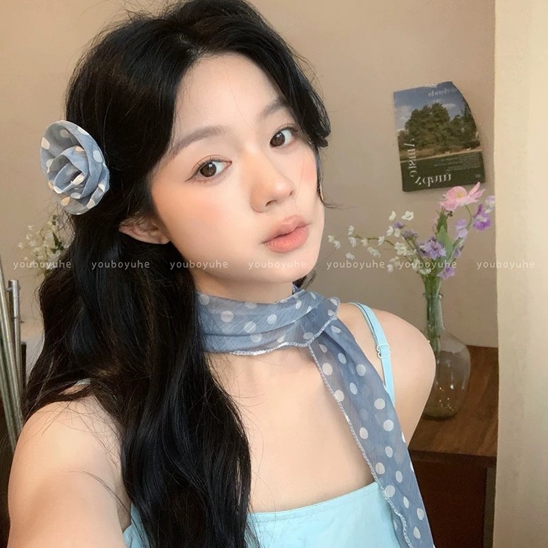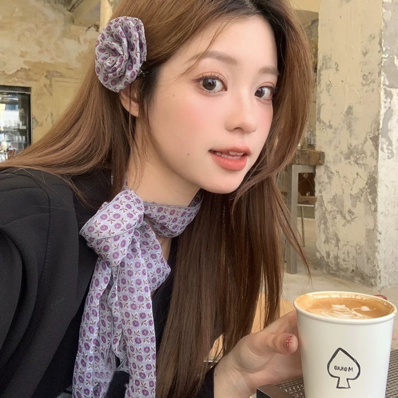 2025 새로운 순수한 욕망 스타일 분리형 장미 꽃 머리핀 실크 스카프 벨트 헤어 밴드 한국 스타일 분위기 스카프스토어 가기