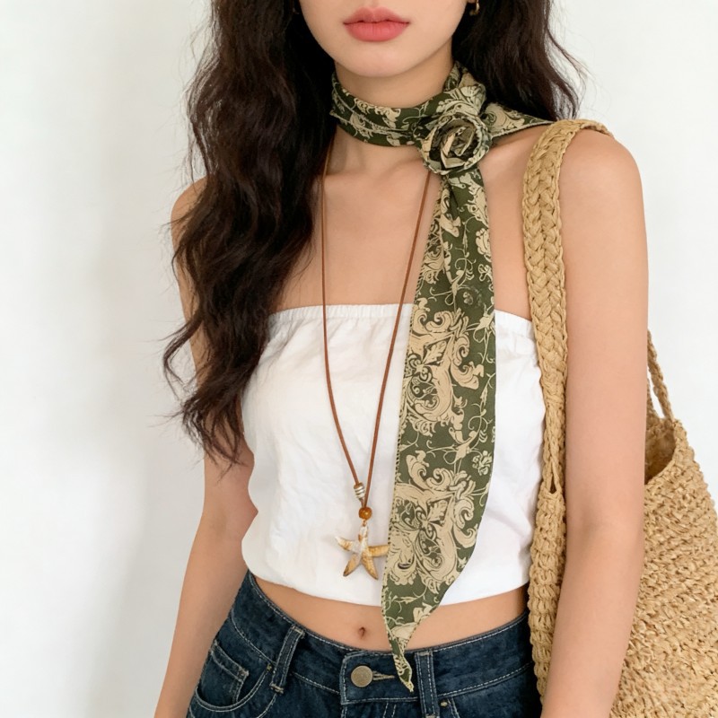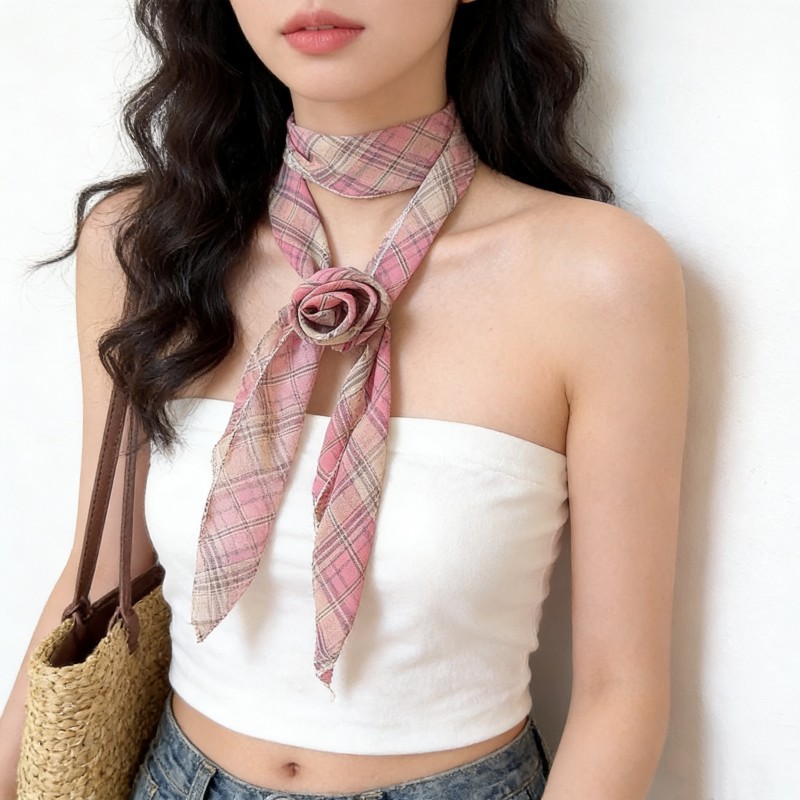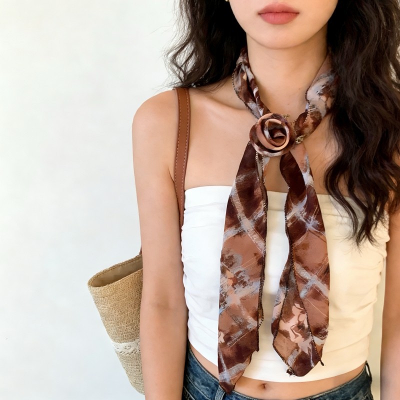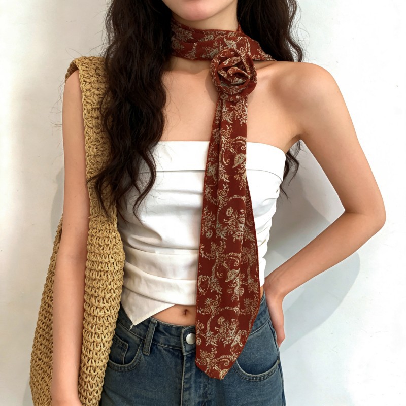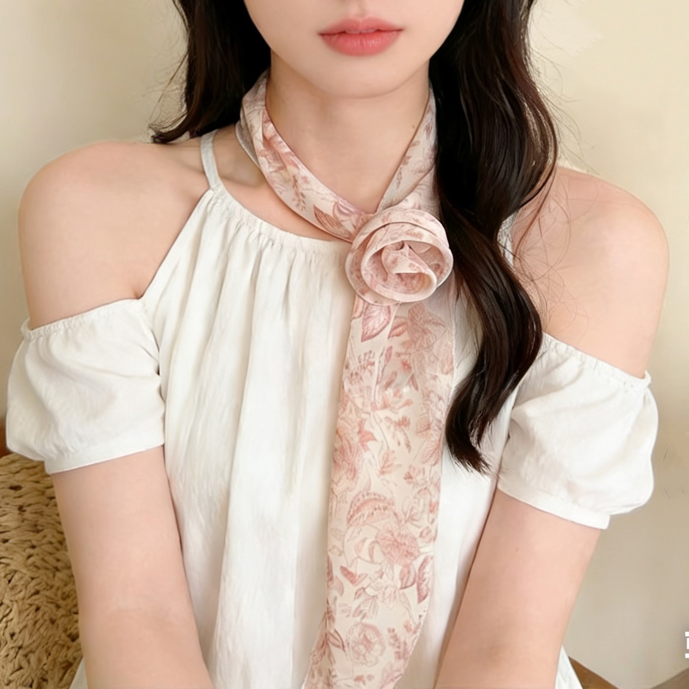 2025 새로운 순수한 욕망 스타일 분리형 장미 꽃 머리핀 실크 스카프 벨트 헤어 밴드 한국 스타일 분위기 스카프스토어 가기
