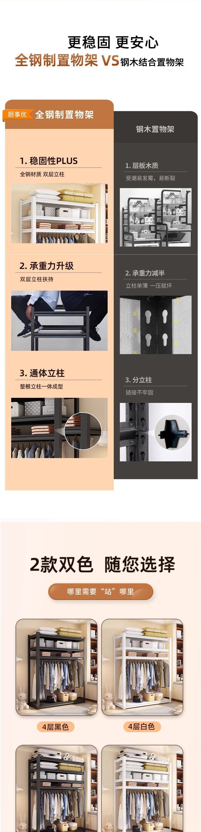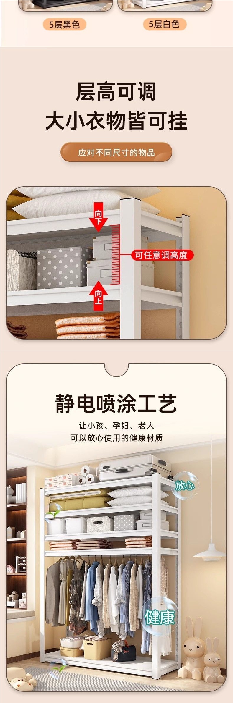 다기능 보관 랙 의류 선반 홈 침실 옷장 개방형 옷걸이 조립 임대 주택 보관 랙