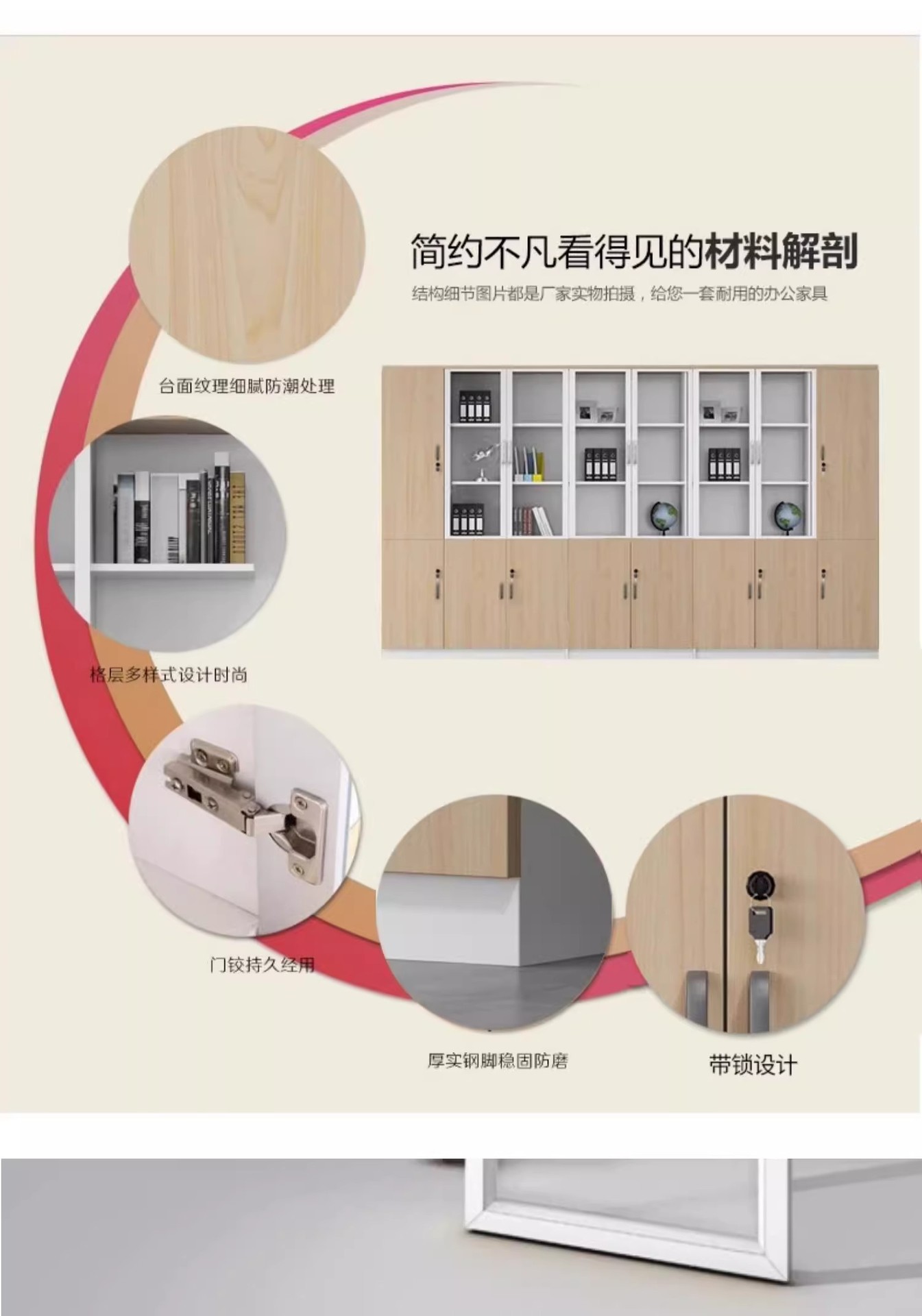사무용 파일 캐비닛 나무로 만든 심플하고 현대적인 파일 캐비닛 정보 캐비닛 보관 캐비닛 책장 잠금장치가 있는 사무실 책장