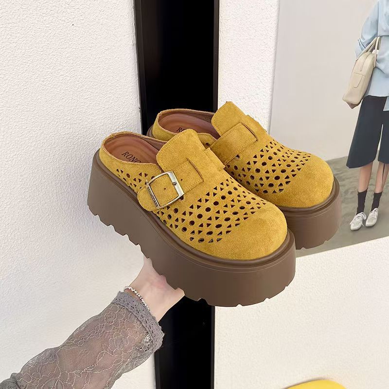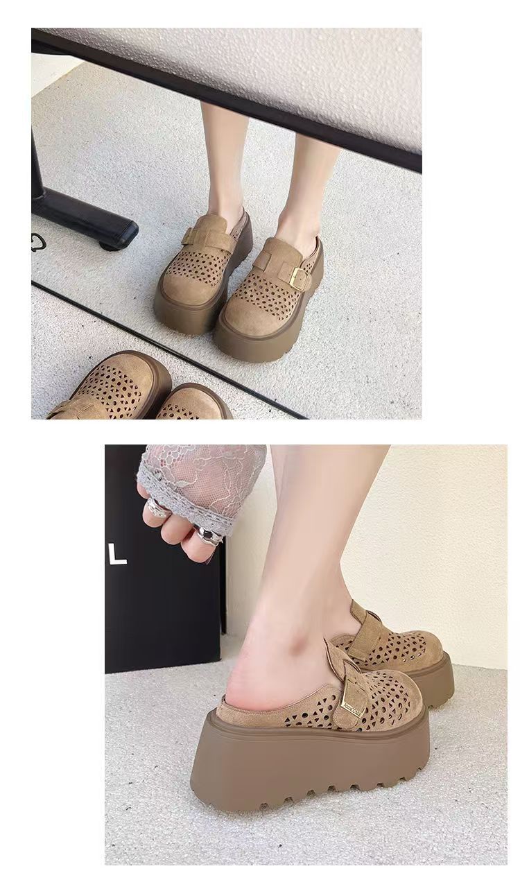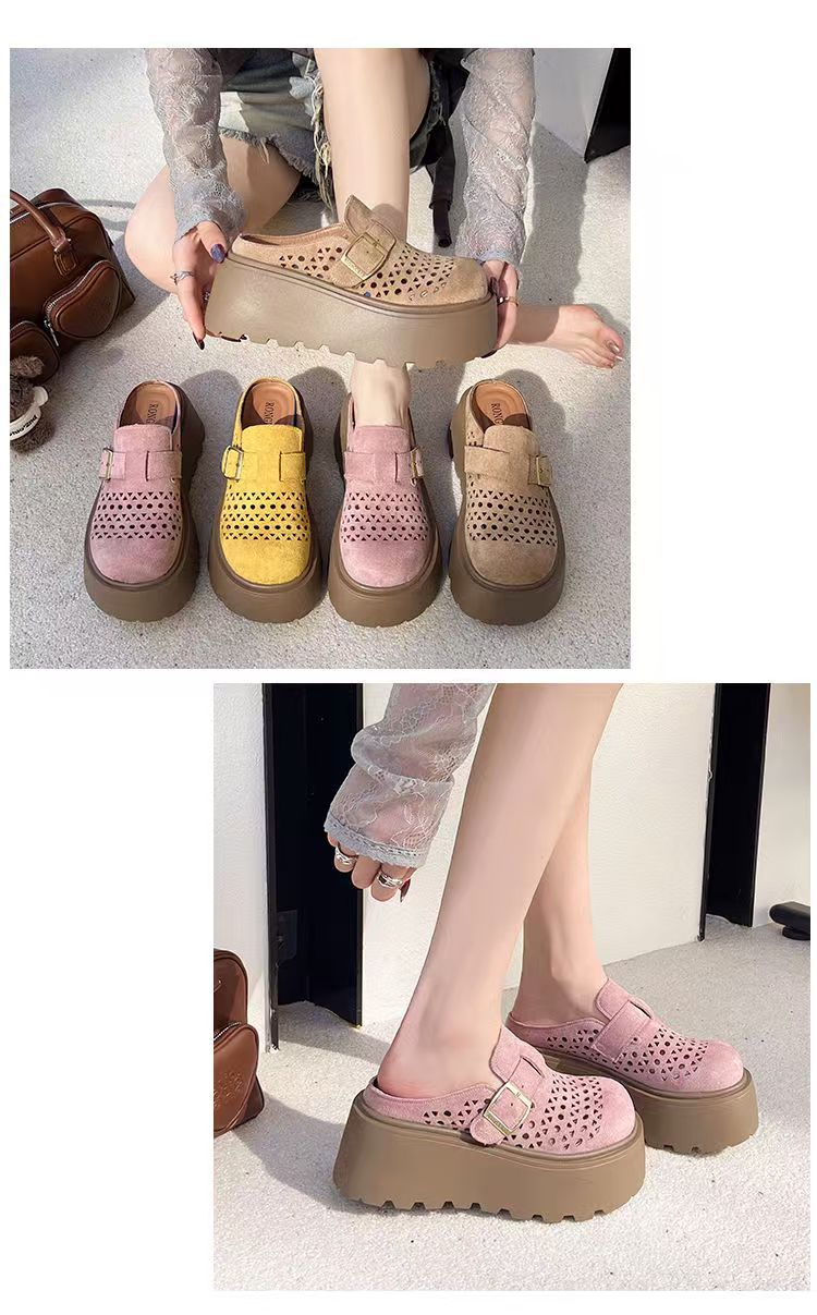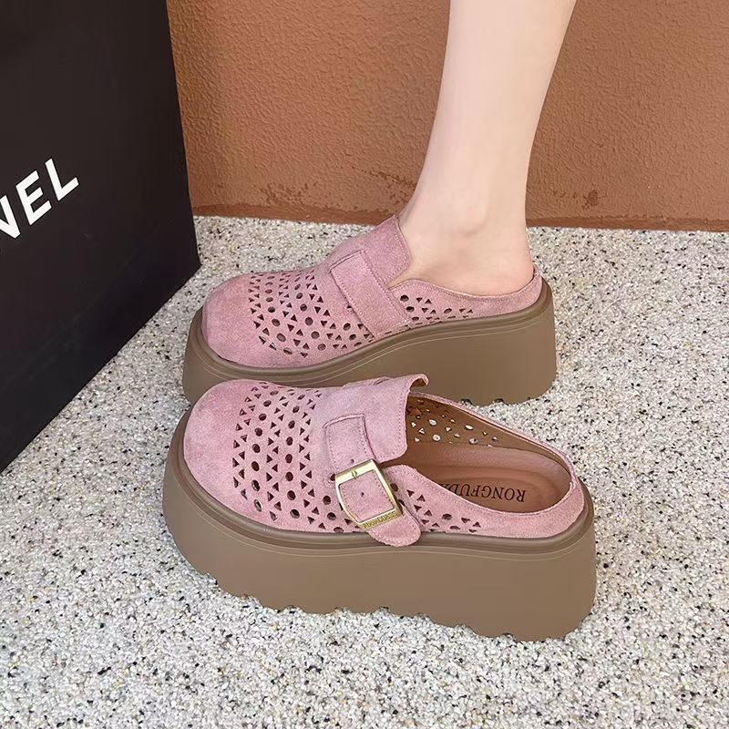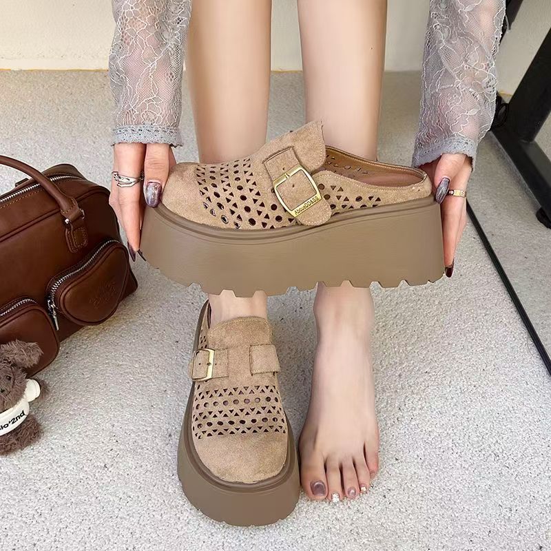 여름 아우터로 입기 좋은 여성용 인기 두꺼운 밑창 이너 키높이 버켄스탁 샌들 2025 게으른 중공 발가락 반슬리퍼스토어 가기